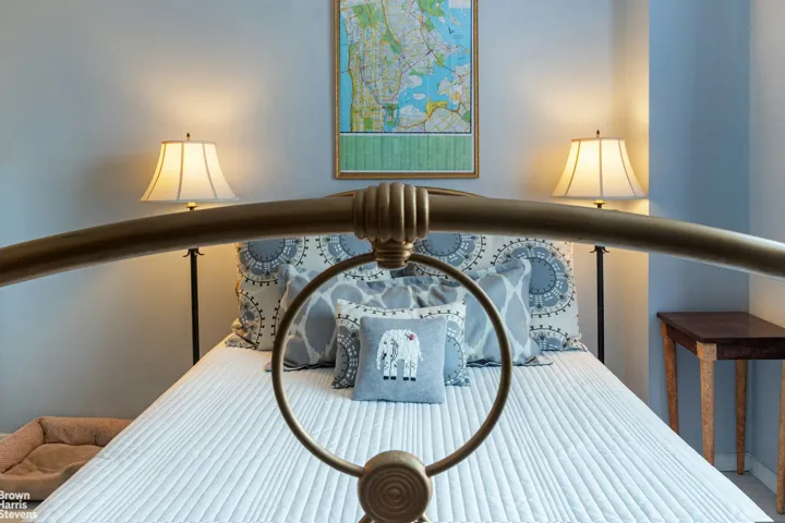 The formal dining foyer leads to a stunning sunken living room with original cast iron railings, pristine parquet floors, and 8'6" ceilings. Five windows throughout—including in the kitchen and bath— This versatile living area easily accommodates both a cozy sofa and a comfortable bed, making it perfect for everyday living. \n