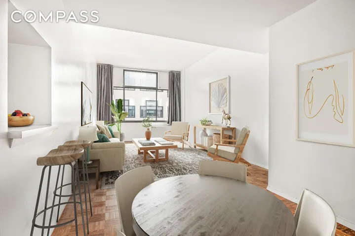 +"PublicRemarks": "142 East 49th Street, Residence 9E<br> Pre-War Charm. Turn-Key One Bedroom Apartment.<br> <br> Upon entering this residence, you'll discover its graciously configured floor plan, a distinctive characteristic which makes this home so special.<br> <br> As the most expansive layout in the building, the rarely available E-line offers triple exposures through the North, South, and West facing windows of this ninth floor apartment.<br> <br> The living room can accommodate a sectional sofa, entertainment set, dining table, and home office.<br> <br> A separate windowed kitchen is outfitted with stainless steel appliances, ample countertop space and cabinetry with room for additions.<br> <br> The king sized bedroom with custom wardrobe is situated in the southwest corner of the building.<br> <br> 142 East 49th Street is an art-deco style pre-war building with a doorman (8AM - Midnight), resident superintendent, and laundry facilities on-site. As a condop, this property integrates the best aspects of cooperative and condominium ownership: minimal carrying costs and admin fees while preserving the flexibility to sublet after two years.<br> <br> Located between Lexington and Third Avenues, immerse yourself in the best of Manhattan's dining, fitness, shopping, and transportation with access to the 6, E, and M trains and close proximity to Grand Central.<br> <br> Photos are Virtually Staged with Furniture"