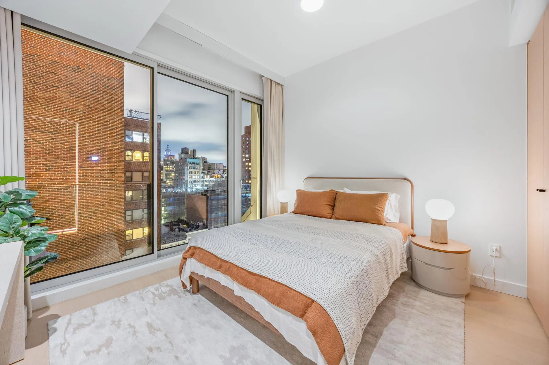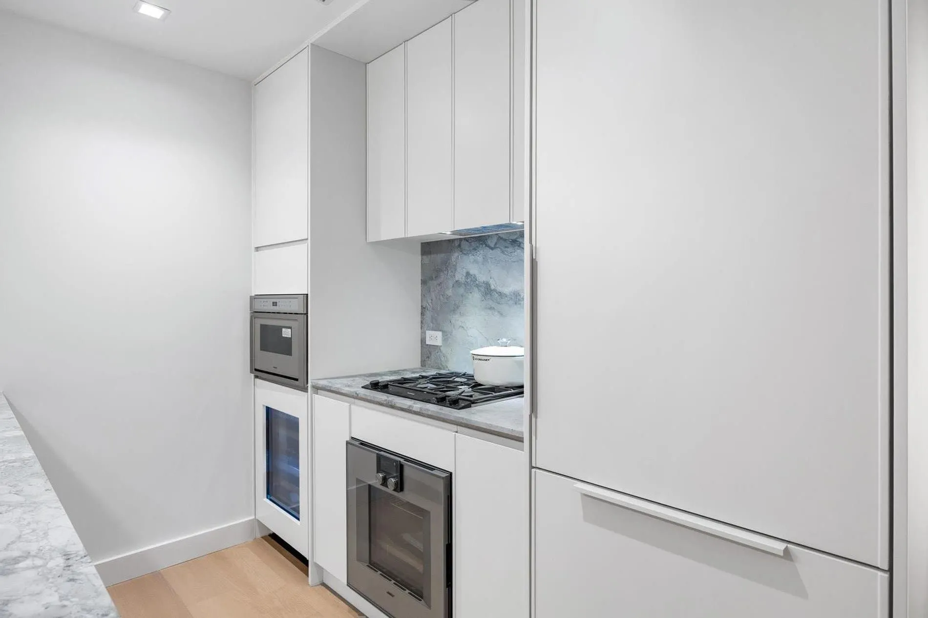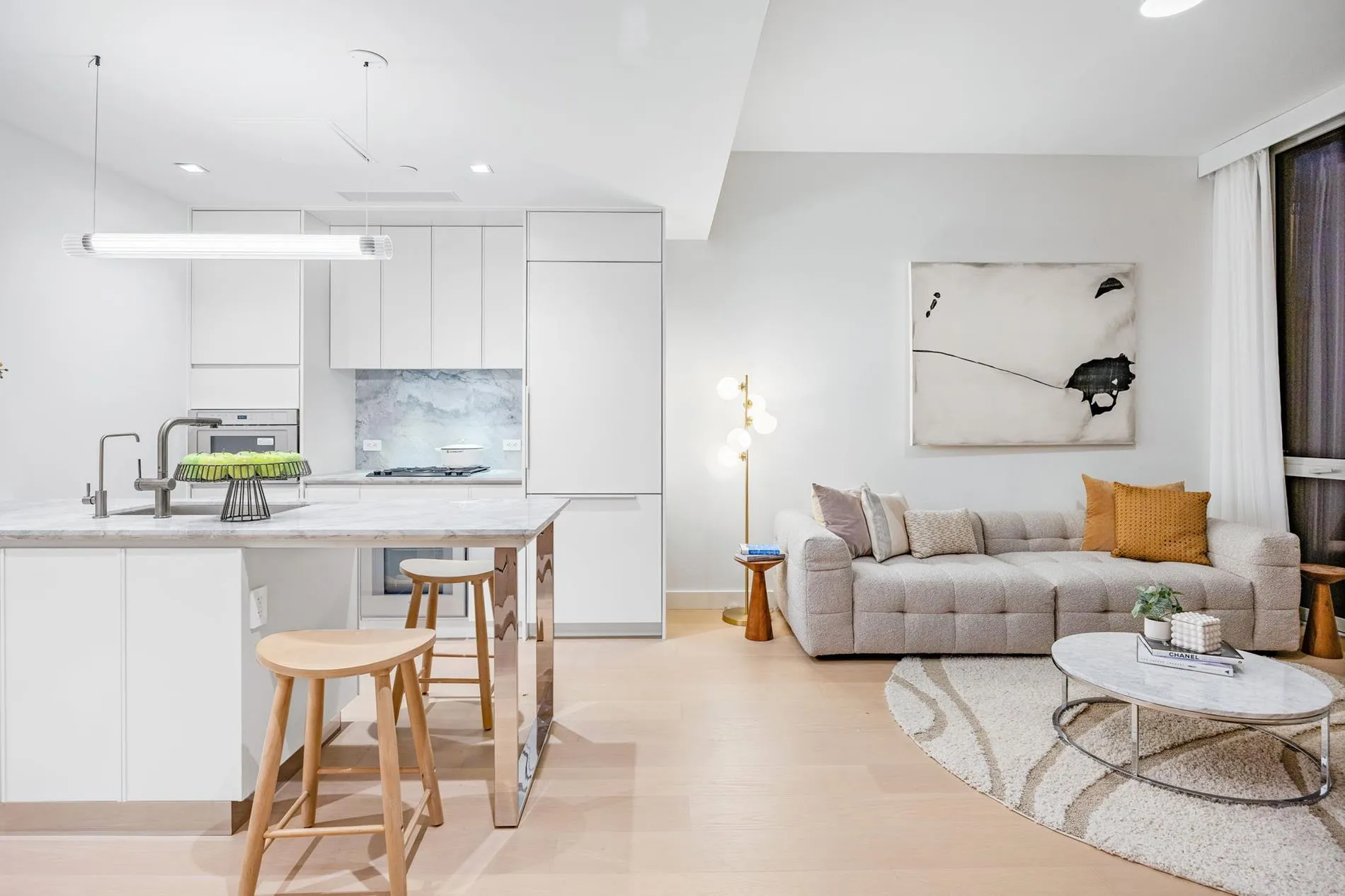 Penthouse C is a bright and airy one-bedroom sanctuary with a private rooftop space. Natural light pours through floor-to-ceiling oversized windows, enhancing the spacious ambiance. The open kitchen is a culinary masterpiece, featuring pristine marble countertops, a striking backsplash, and a spacious island framed by sleek white lacquer cabinetry. Integrated high-end appliances, including a Thermador refrigerator and Bosch dishwasher, ensure a seamless cooking experience. Thoughtfully designed for modern living, this exceptional residence is equipped with central air conditioning, an in-unit washer and dryer, and a smart entry lock for ultimate convenience.