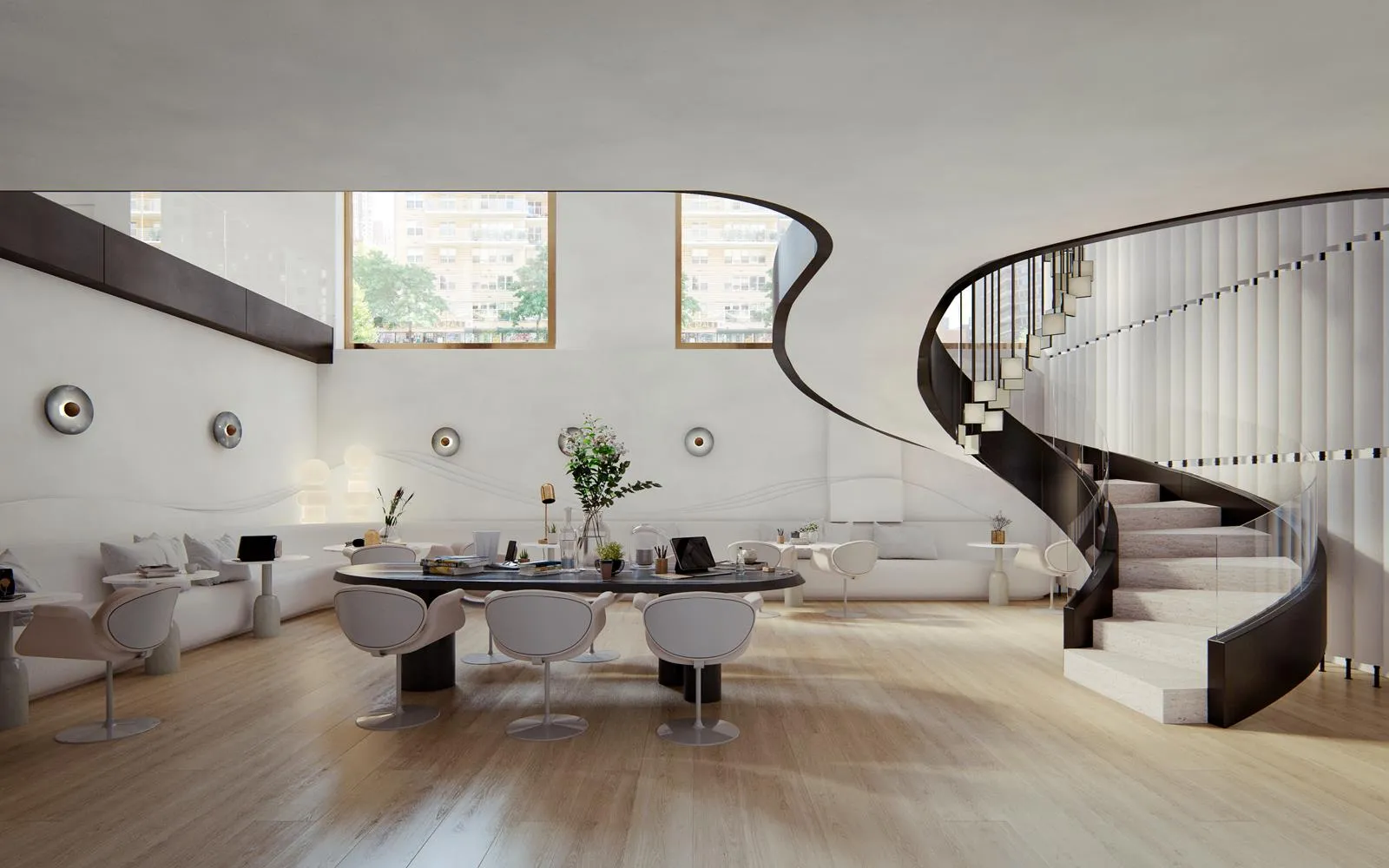 With interiors by Paris Forino, Hendrix House offers amenities that serve as sophisticated spaces for entertainment and socializing, as well as perfectly accommodating business meetings. Spacious co-working areas are designed to optimize your performance, creating balance and focus.