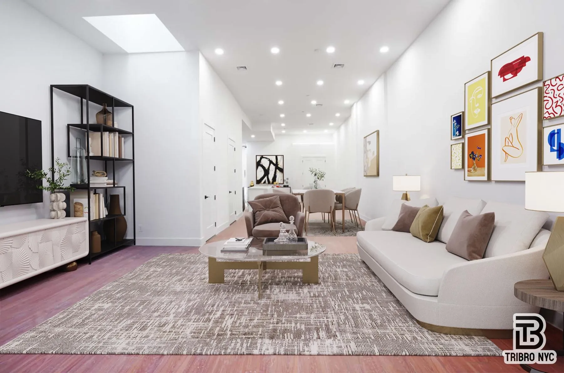 With soaring ceilings and an ultra-generous layout, the space unfolds naturally into four distinct zonesreading, dining, lounging, creatingall harmoniously coexisting in a room that invites both energy and calm.