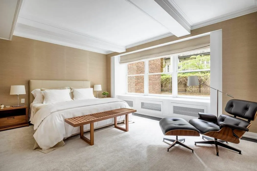 Apartment 2S is an elegant 4,357 square foot, five bedroom residence. This stunning apartment boasts an expansive 42 1/2 foot Living/Dining Room with treetop views over Fifth Avenue and the Metropolitan Museum of Art from three pairs of double Citi-Windows. An adjacent eat-in Chef’s Kitchen opens onto a large private terrace with an outdoor dining area and has been thoughtfully designed with a full complement of luxury appliances, superb storage for dining for as many as ten. Appliances include a Sub-Zero refrigerator and wine storage unit, a Viking oven and range with a vented hood, and a Miele dishwasher and microwave. The versatile floorplan provides for as many six Bedrooms, each with an en-suite bathroom. The oversized corner Primary Bedroom enjoys sunny southern exposures over the adjacent townhouse gardens, a luxurious Primary Bathroom with heated floors, and excellent storage. Each of the additional four Bedrooms includes a large closet and an en-suite Bathroom. A Laundry Room with a side-by-side Miele washer and dryer, and a Powder Room complete this special apartment. Downstairs, the ultimate urban luxury, Apartment 1E is a charming 468 square foot Guest/Staff Studio overlooking the tree-lined street with a full Kitchen and Bathroom. This sale also includes a private storage bin. This beautiful home is offered in pristine, turn-key condition, with striking 21st-century interiors and luxurious finishes throughout.