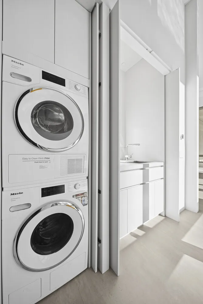 Miele washer and dryer behind retractable doors