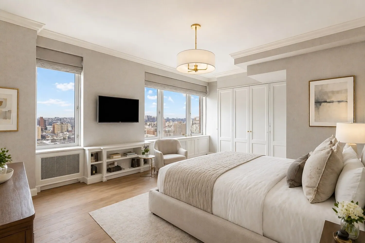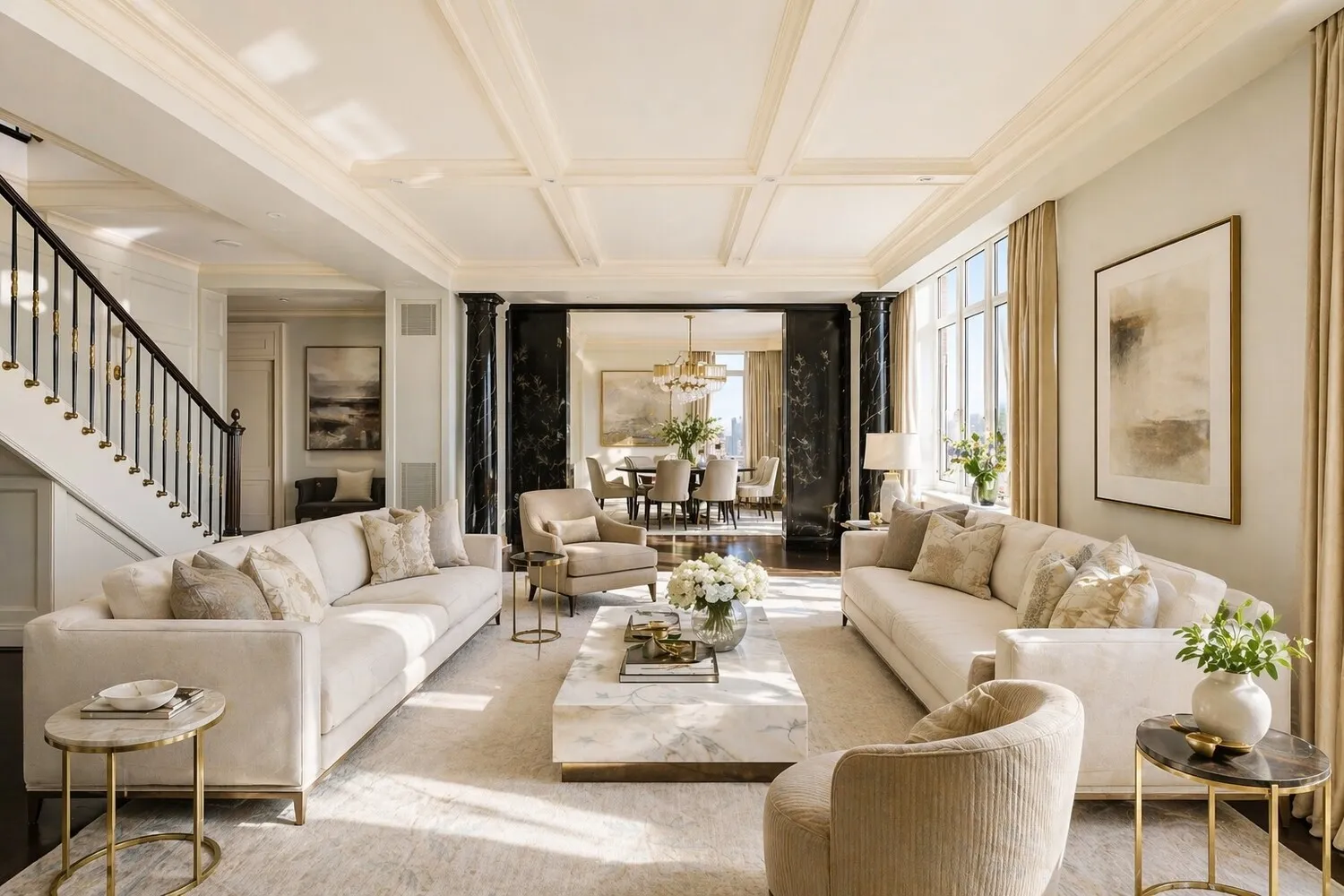 At the crown of 455 Central Park West, this extraordinary duplex penthouse is making its first-ever market debut. Seamlessly combining two penthouses across two full floors, the residence spans more than 6,300 square feet and offers a scale of living that is increasingly rare in Manhattan. With all four exposures, extraordinary natural light throughout the day, and sweeping views of Central Park and the Midtown skyline, this is a home defined by volume, presence, and true proportion.