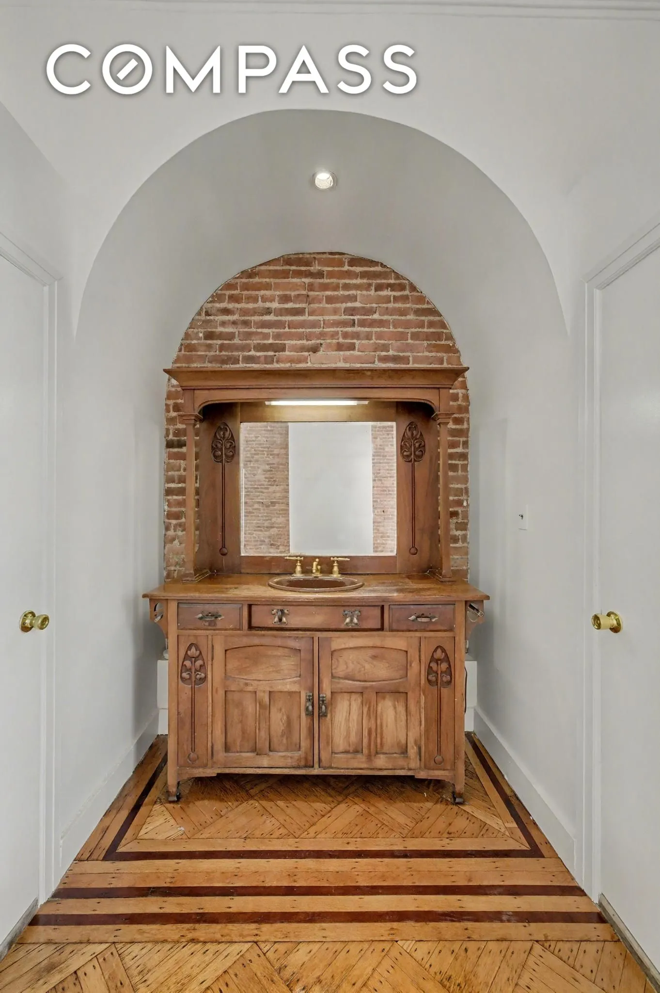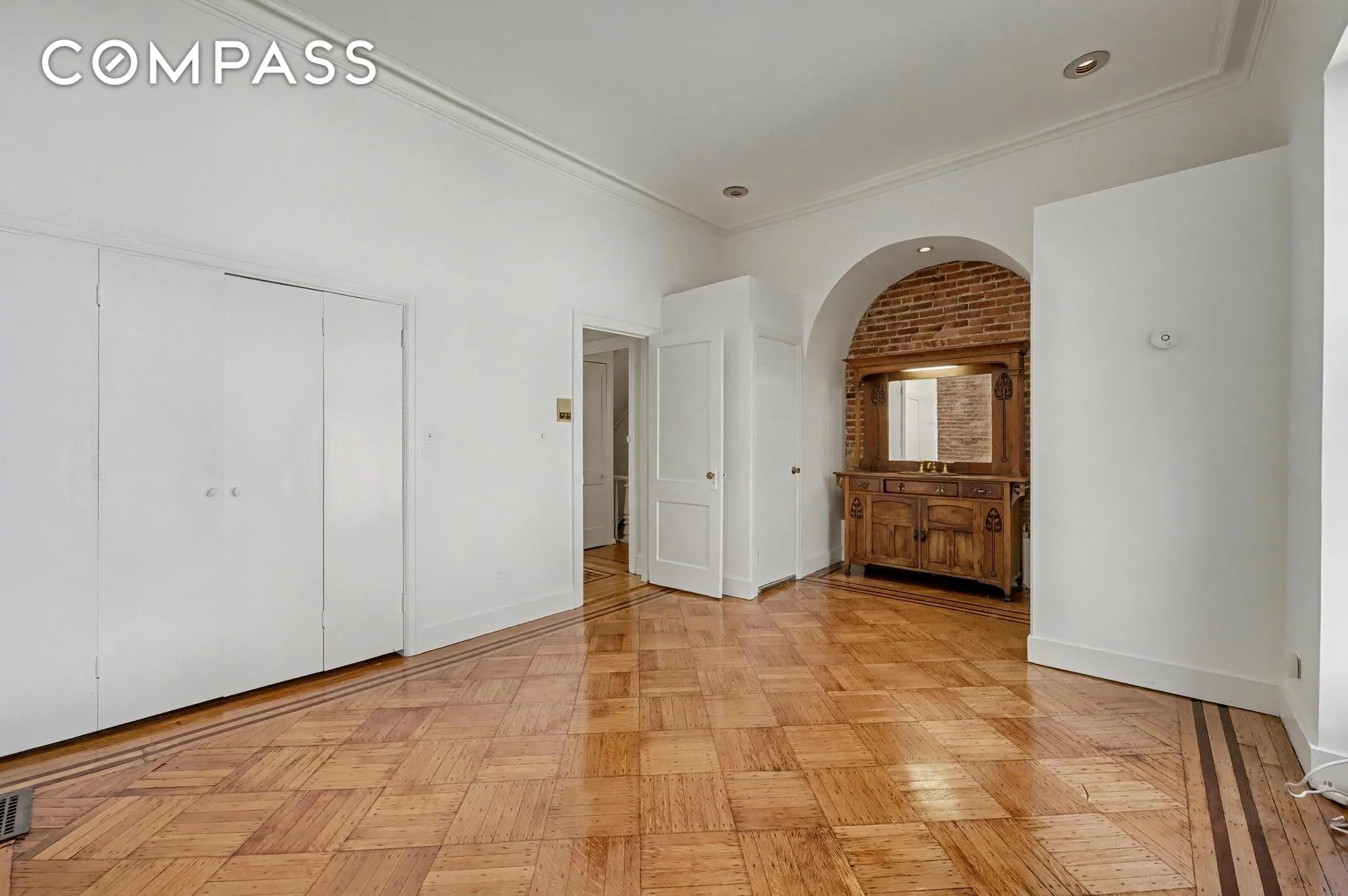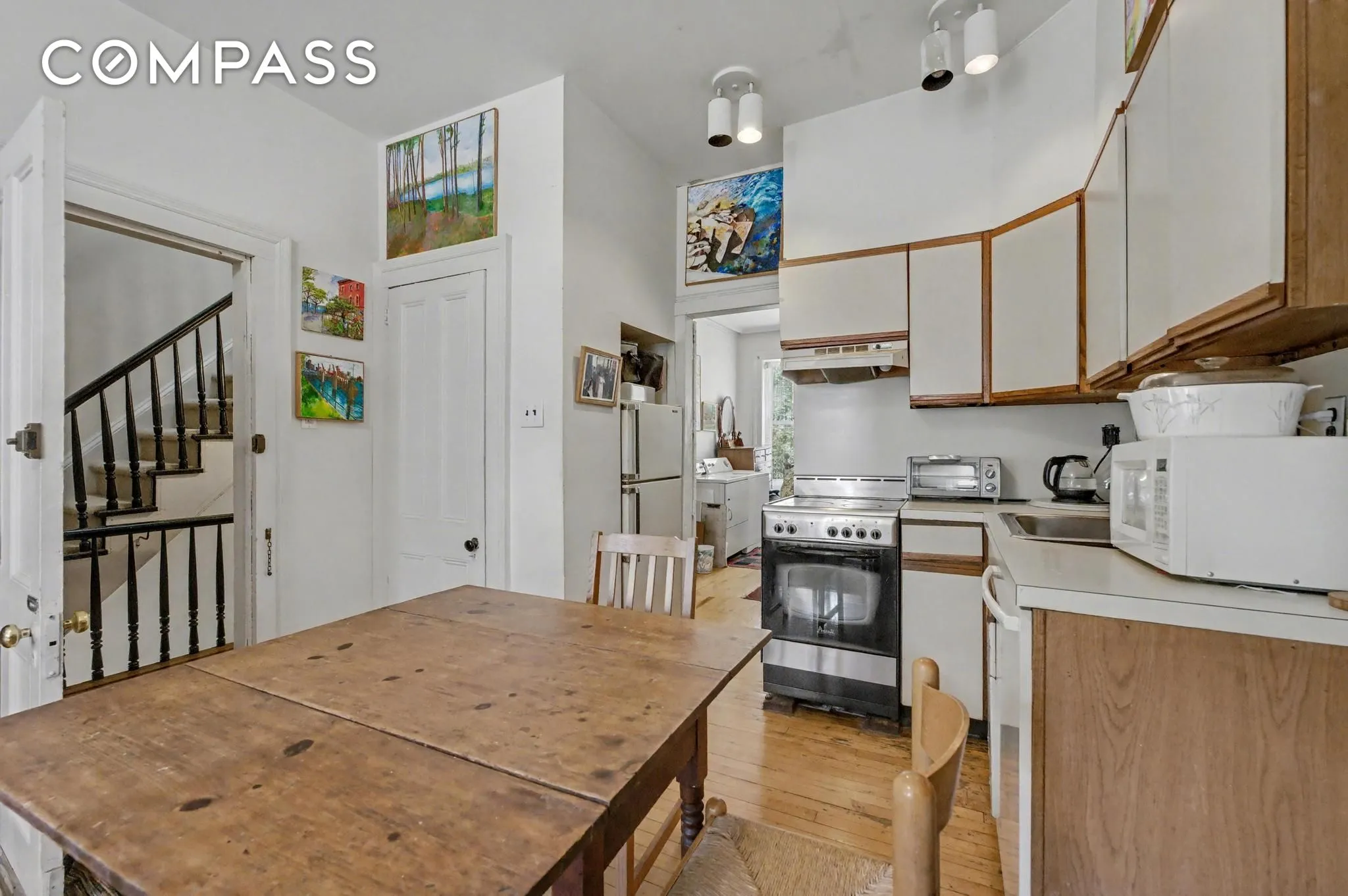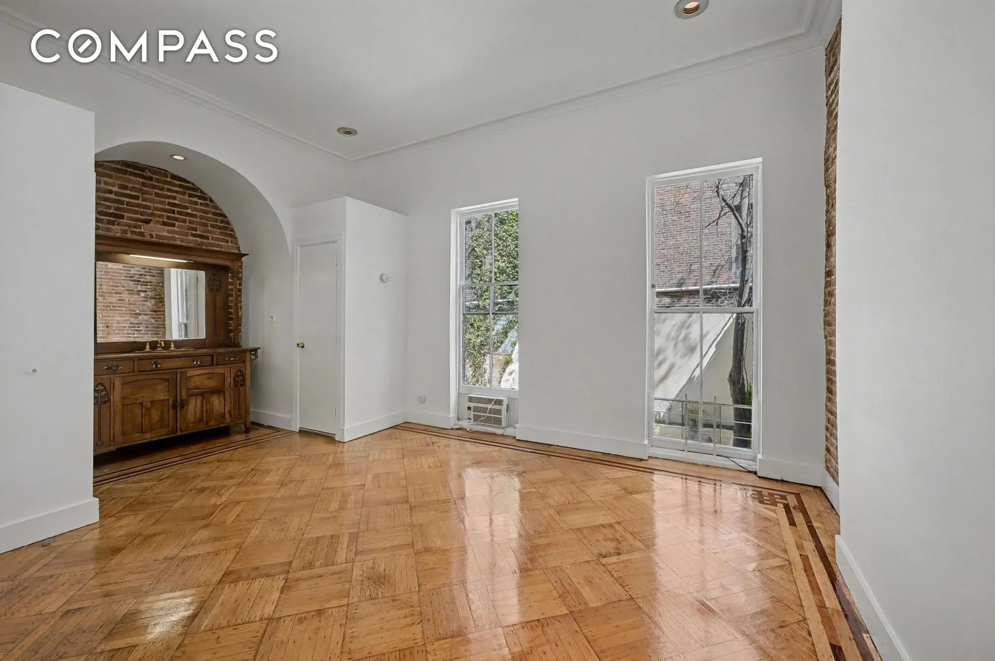 The upper floors house two bright, floor-through apartments overlooking the garden. The second floor unit has a gracious eat-in kitchen and large living /dining area with a warm bedroom and full bathroom. The third floor unit is currently configured as a 2 bedroom unit with a large living room, kitchen and full bathroom. Throughout the building, the historic character is preserved by hardwood floors and multiple original marble fireplace mantels.