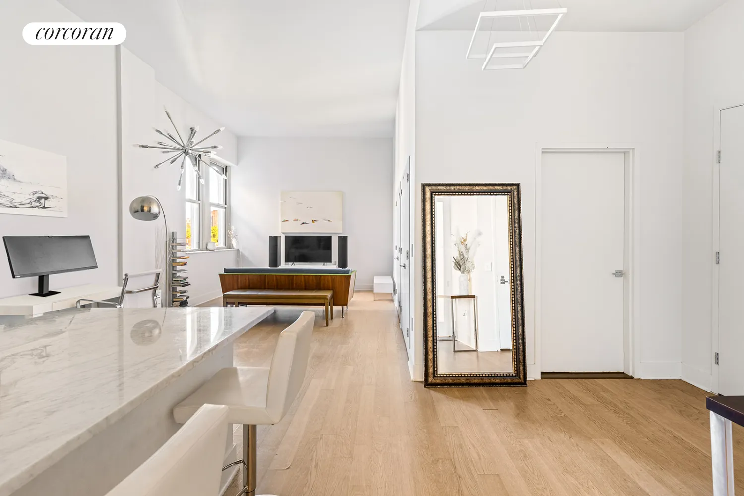 This particular one is surprisingly wonderful. No. 5M is a super special loft residence with an open plan design, herringbone pattern flooring, and a lofty fourteen-foot demeanor that combine to give high marks for living.