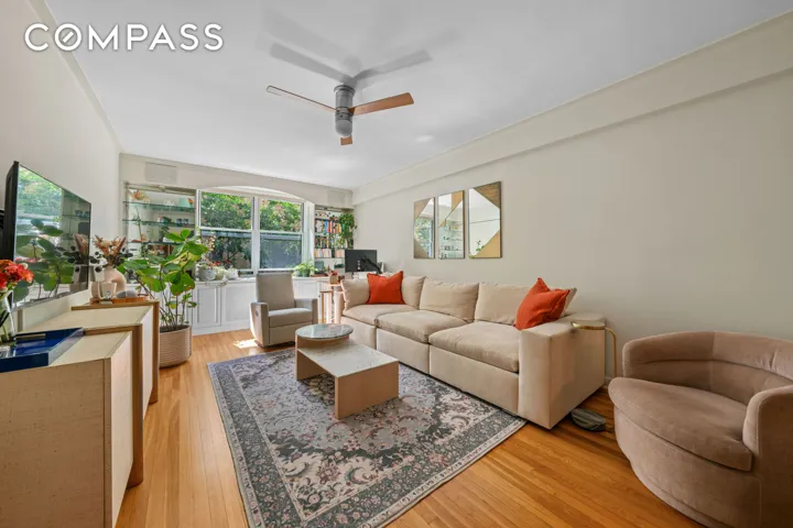 Come home and settle into 4F - a serene retreat nestled near Upper Manhattan’s most cherished green spaces. 680 W 204th St is a beloved Art Deco building with period details- making you feel as if you’ve traveled back in time: herringbone wood floors with mahogany inlay, high ceilings, picture moldings, classic curved archways, and original built-in shelving with cupboard. The welcoming foyer - spacious enough for dining - leads you into the gracious living room with western facing windows, perfect for unwinding and entertaining. Large king-sized bedroom with ceiling fan has two custom closets with doors restored to wood finish and accented with glass doorknobs. Second bedroom with Eastern facing windows makes a lovely bedroom, office or space for guests. \n