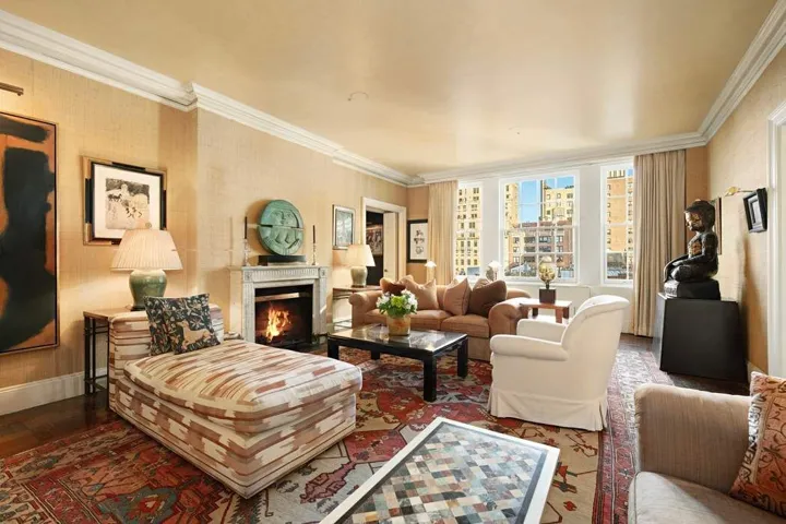 +"PublicRemarks": "Beautifully perched on Fifth Avenue with direct open views of Central Park and the Reservoir from six of the thirteen rooms, this elegant corner five-bedroom duplex home is unique on Fifth Avenue. Twelve over-sized picture windows along Fifth Avenue afford the double living room and each of the five bedrooms with captivating direct Central Park views - a rare distinction on Fifth Avenue and currently the only apartment available with six rooms facing the Park. This impressive classic prewar residence offers an abundance of generously proportioned rooms spread over two floors in one of Fifth Avenue's most elegant cooperatives. <br> <br> A semi-private elevator landing opens to a very gracious gallery from which all rooms on the main level are approached. An expansive 26 X 25 double living room is punctuated with a wood burning fireplace and an eye-catching sweep of views across the Park through three large picture windows. The formal dining room flows seamlessly beyond the living room and easily accommodates dining and entertaining on a large scale. The windowed eat-in kitchen includes an adjacent pantry and staff bedroom with a full bathroom. The main level is complete with a separate corridor off the entry gallery which leads to two-bedroom suites - each with its own bath. A handsome staircase off the entry connects the main level with the gracious upper floor bedroom landing. The vast primary bedroom suite with wood-burning fireplace and direct Central Park views includes an enviably proportioned windowed bath with separate dressing room and closets. There are two additional bedrooms facing the park with baths en-suite. A delightful library/media room on the upper level bedroom floor offers a cozy contrast to the more public rooms below. A particularly spacious laundry room and workspace completes the upper floor and includes a home office, additional staff room and full bath. The sale includes two storage rooms accessed within the building. <br> <br> 1158 Fifth Avenue is a landmarked prewar cooperative building Designed by C. Howard Krane and Kenneth Franzheim in the French Renaissance-style and completed in 1924. The building sits atop a 3-story limestone base and is clad in tan brick with wrought iron and limestone detailing. Residents enjoy an abundant and courteous staff including fulltime doorman, concierge and resident manager offering impeccable service and security. Amenities include a fitness center, private storage, bicycle storage and central laundry. Located in prime Carnegie Hill on Central Park, 1158 Fifth is minutes to the world's top museums, luxury shopping, superb restaurants and Manhattan's preeminent schools. Financing is allowed up to 40% and pets are permitted. <br>"