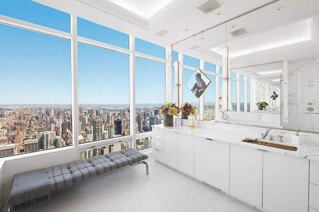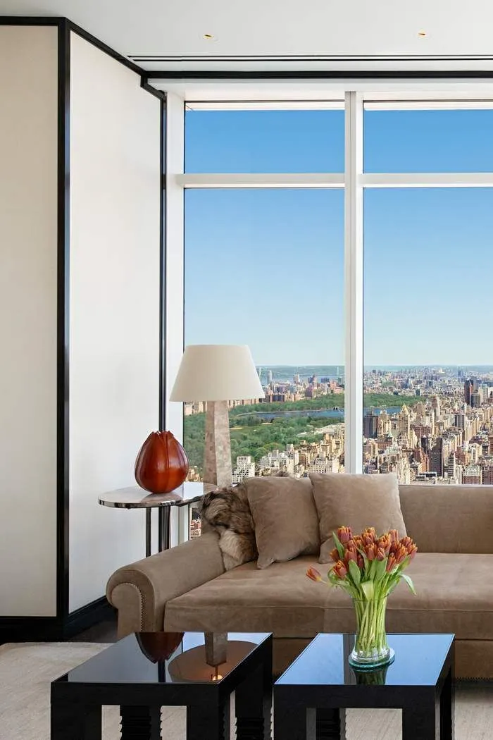 Perched on the 54th floor of One Beacon Court—New York’s most prestigious modern landmark with a private circular driveway, designed by renowned architect Cesar Pelli—this stunning penthouse, meticulously crafted by internationally acclaimed interior designer Jacques Grange, occupies the coveted front corner and offers commanding panoramic views. Forty floor-to-ceiling windows and soaring ceilings frame breathtaking vistas of the city and beyond. Light floods every room, highlighting bespoke design details and creating a sense of airy elegance throughout.