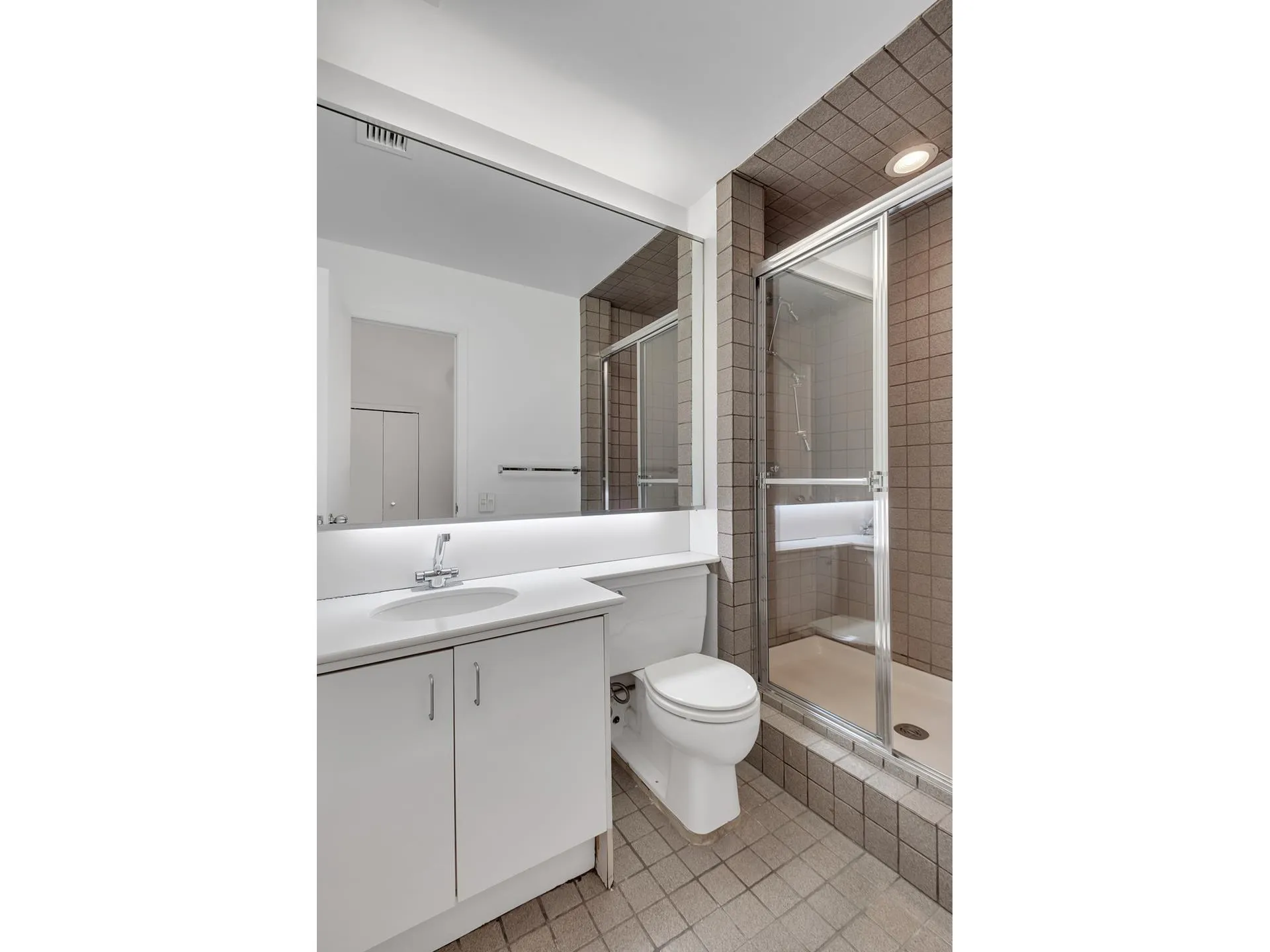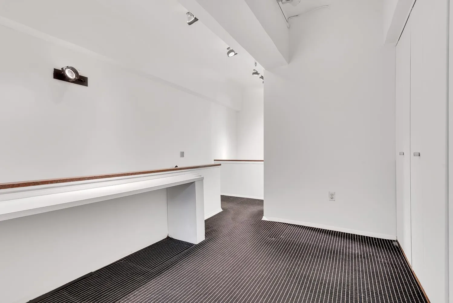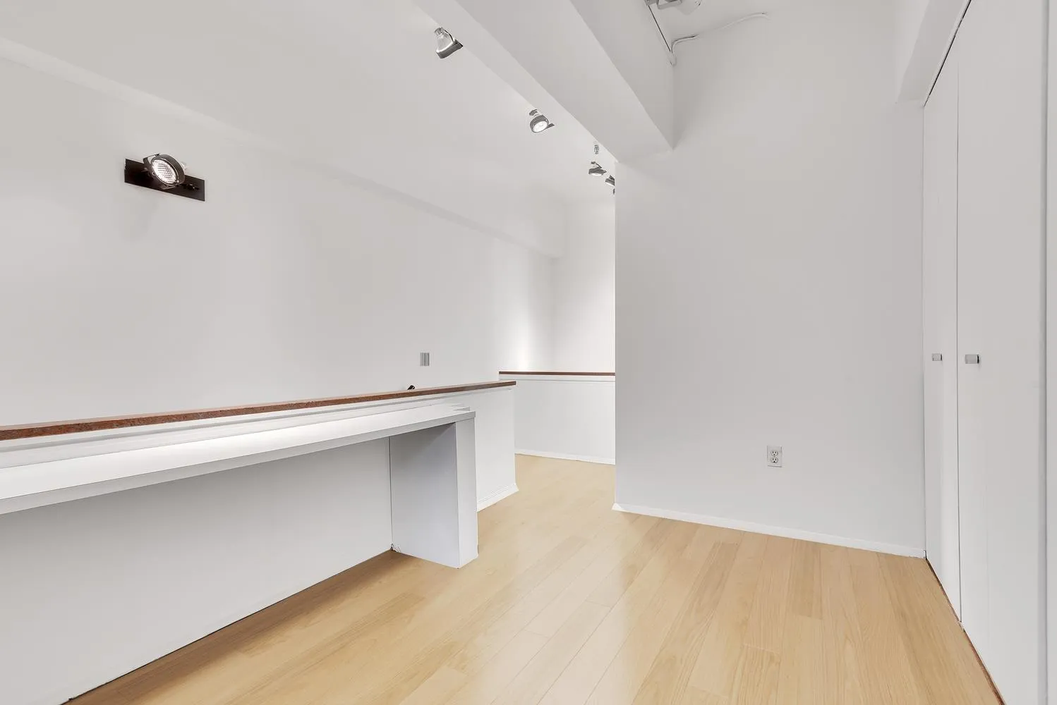 The lower level of this apartment which features 13 feet ceilings includes an office/media room/or guest room with 3 large closets and additional storage above, another full bath and second entrance to the apartment.