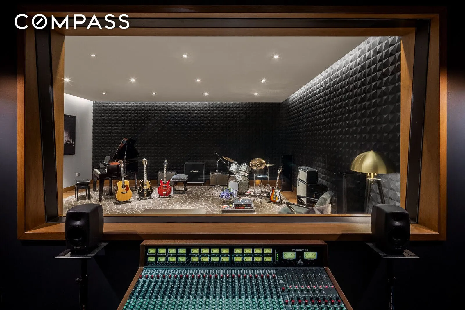 The open-concept kitchen and living area is ideal for entertaining, featuring floor-to-ceiling windows, a spacious island with seating for five, and excellent storage including dual pull-out pantries. Outfitted with sleek Pedini cabinetry, Gaggenau appliances, wine fridge, and a vented range hood, the kitchen is both stylish and functional. A generous alcove just off the kitchen makes the perfect home office or library nook.