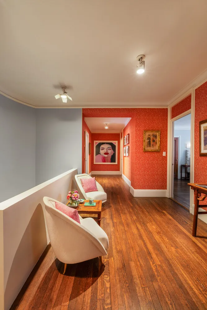 Three spacious bedrooms line up toward the treelined Park Avenue with views of the distinct plantings that comes with each changing season. One of the bedrooms, currently configured as an upstairs living room, creates a separate suite with its newly renovated windowed bath, its own wood-burning fireplace, as well as a kitchenette.