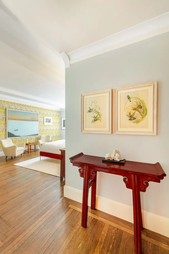 Not only does this elegant and graciously proportioned Rosario Candela duplex come with grand rooms perfect for entertaining, over 67 feet frontage on prime Park Avenue between 72nd and 73rd Street, soaring ceilings, incredible art walls, mahogany wood paneled library, three wood burning fireplaces, large modern eat-in kitchen, a separate bedroom floor with five bedrooms and five baths – it is also one of the very few residences on Park Avenue with its own private entrance directly on the storied avenue.