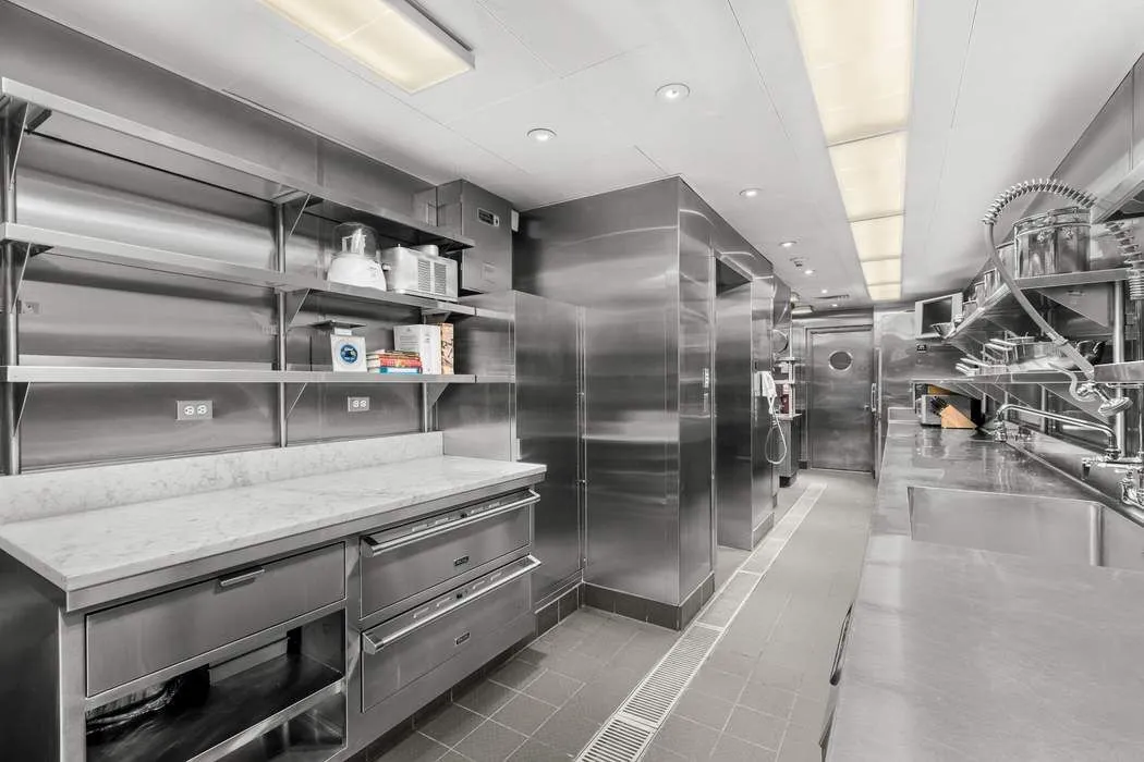 Throughout, soaring high ceilings – up to over 13 feet – and extremely impressively-scaled rooms are complemented by extraordinary detail, such as solid mahogany doors and windows, hand-selected marble paneling and floors, rare English brown oak paneling, parquet de Versailles and herringbone white oak floors, numerous wood-burning fireplaces, and carved plaster crown moldings. Sublime proportions and exquisite detail abound. With an eye to the legacy of the design, only the very top-quality methods and materials have been selected. A passenger elevator services all floors, and a service elevator additionally supports all but the top three levels. Other thoughtful details, such as very ample storage and support areas, including a separate catering kitchen, ensure that the house lives and runs in an ideal way,