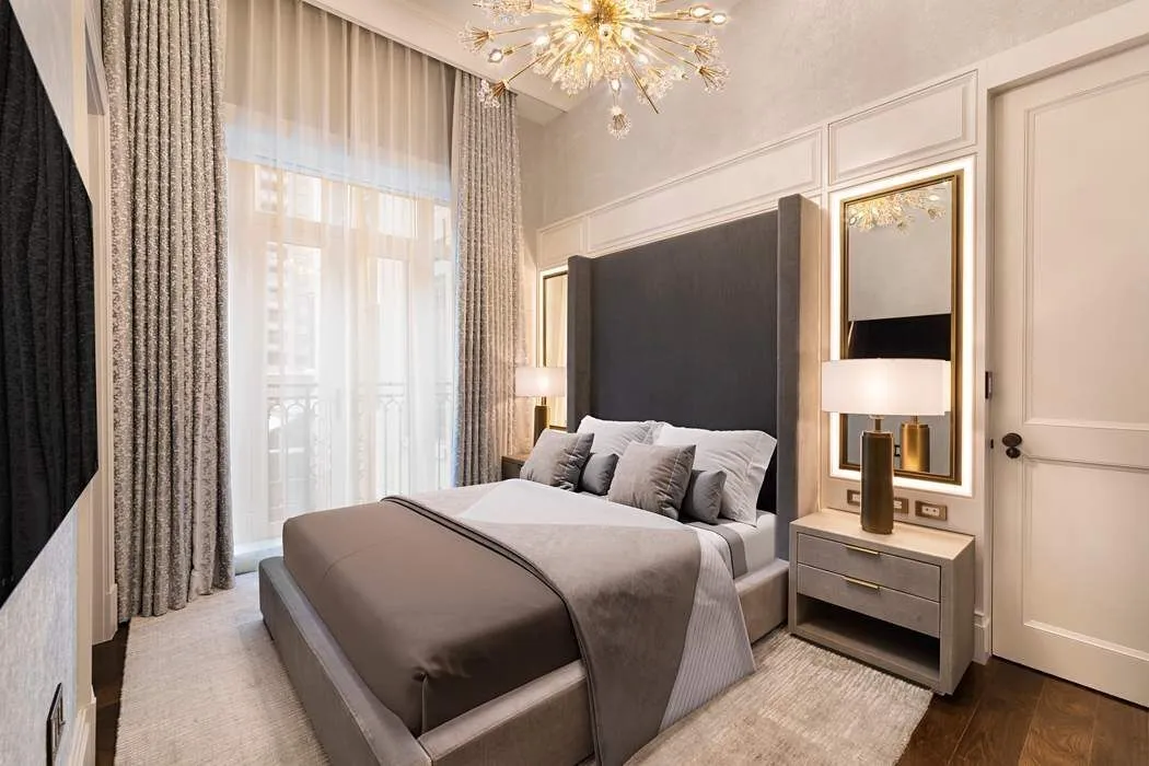 Living room complete with Roberto Cavalli furniture, Swarovski Waterfall Chandelier and Baccarat Paris Chandelier. Beautifully designed gas fireplace surrounded with Carrara marble. Custom Mahogany paneling in library/ living room furnished with Roberto Cavalli and Gianfranco Ferre furniture, Custom made silk drapes and rugs throughout the residence, Radiant heated flooring in all bathrooms and kitchen/ Hardwood, fumed oak floors through High ceilings up to 14 feet , State of the art security, savant operating system, Sonos music system, lutron lighting system throughout the residence, High-end security and connected system, motion sensors, glass break sensors and door sensors.