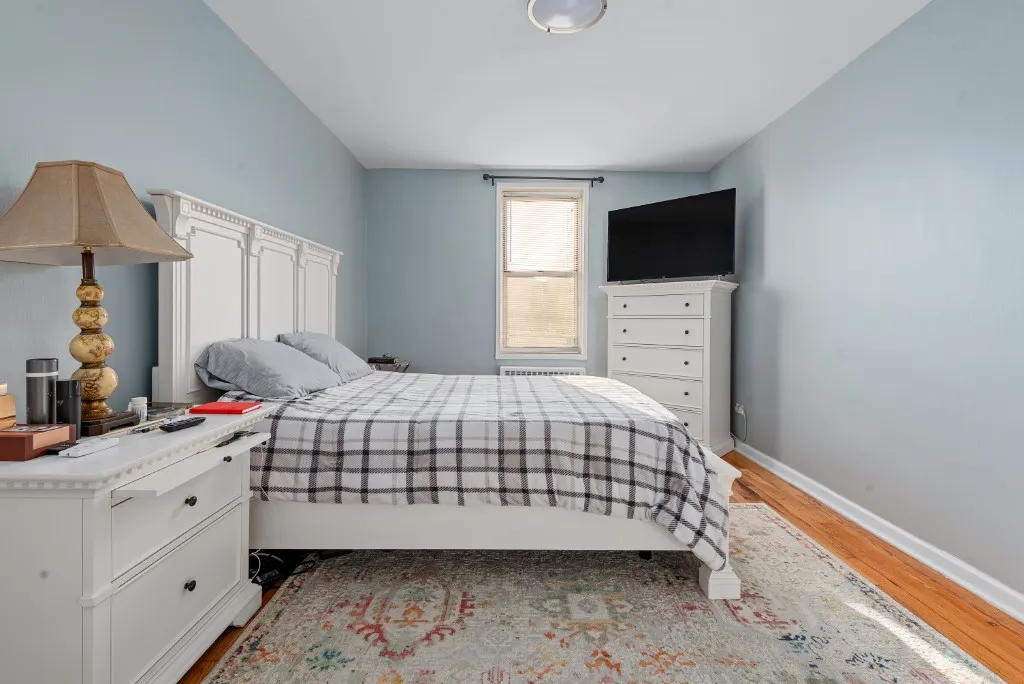 Hardwood Floors: Beautiful hardwood floors run throughout the apartment, adding to the homes timeless appeal.