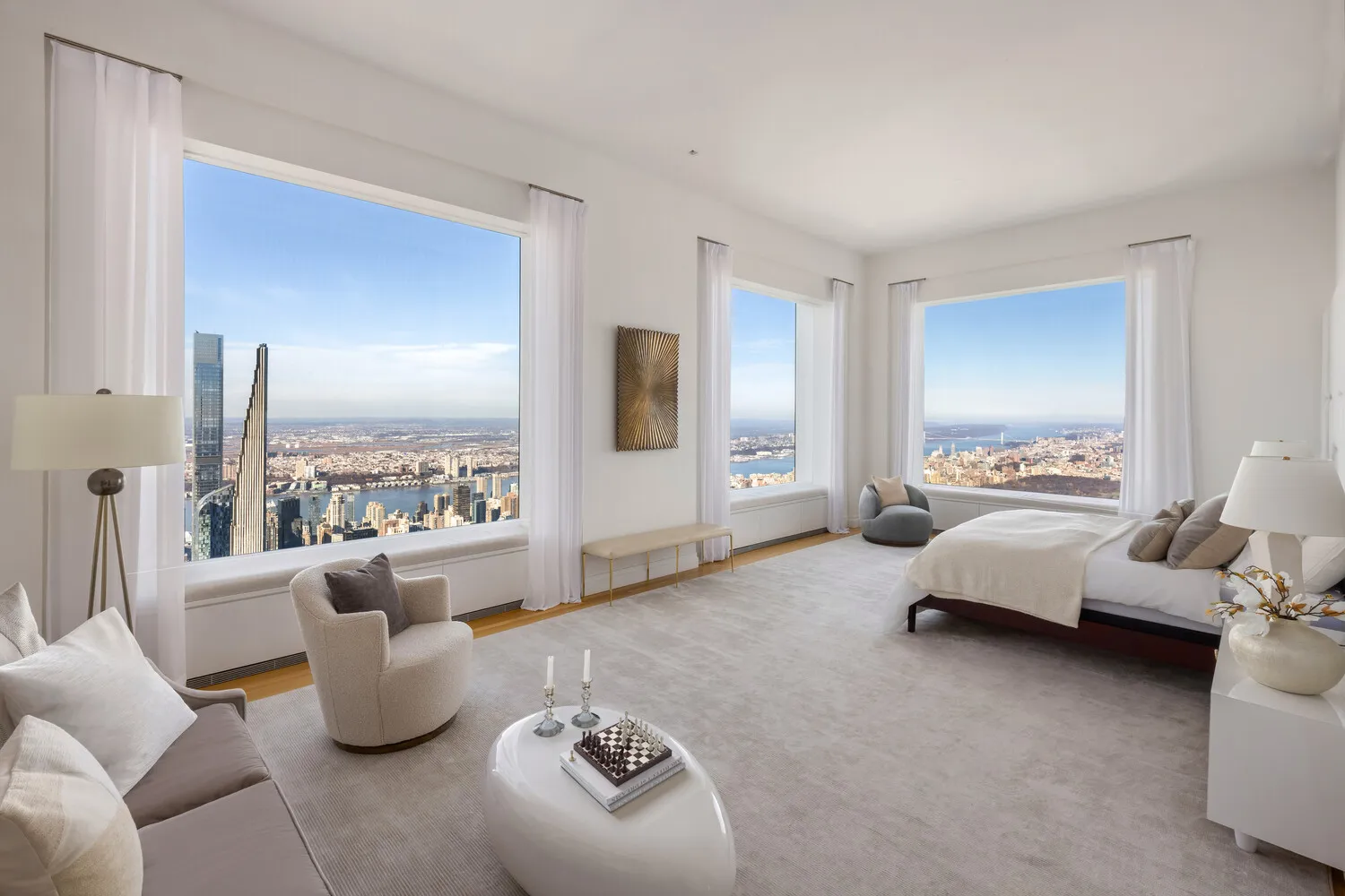 Welcome to the pinnacle three-bedroom plus library residence at the highest level for this configuration, featuring the building’s exclusive 1 of 1 half-floor east-to-west design that delivers sweeping northern panoramas of Central Park from sunrise to sunset across all rooms. Soaring beyond 1,400 feet over Midtown, this home spans over 3,950 square feet with three bedrooms, a library, three full bathrooms, and a powder room.