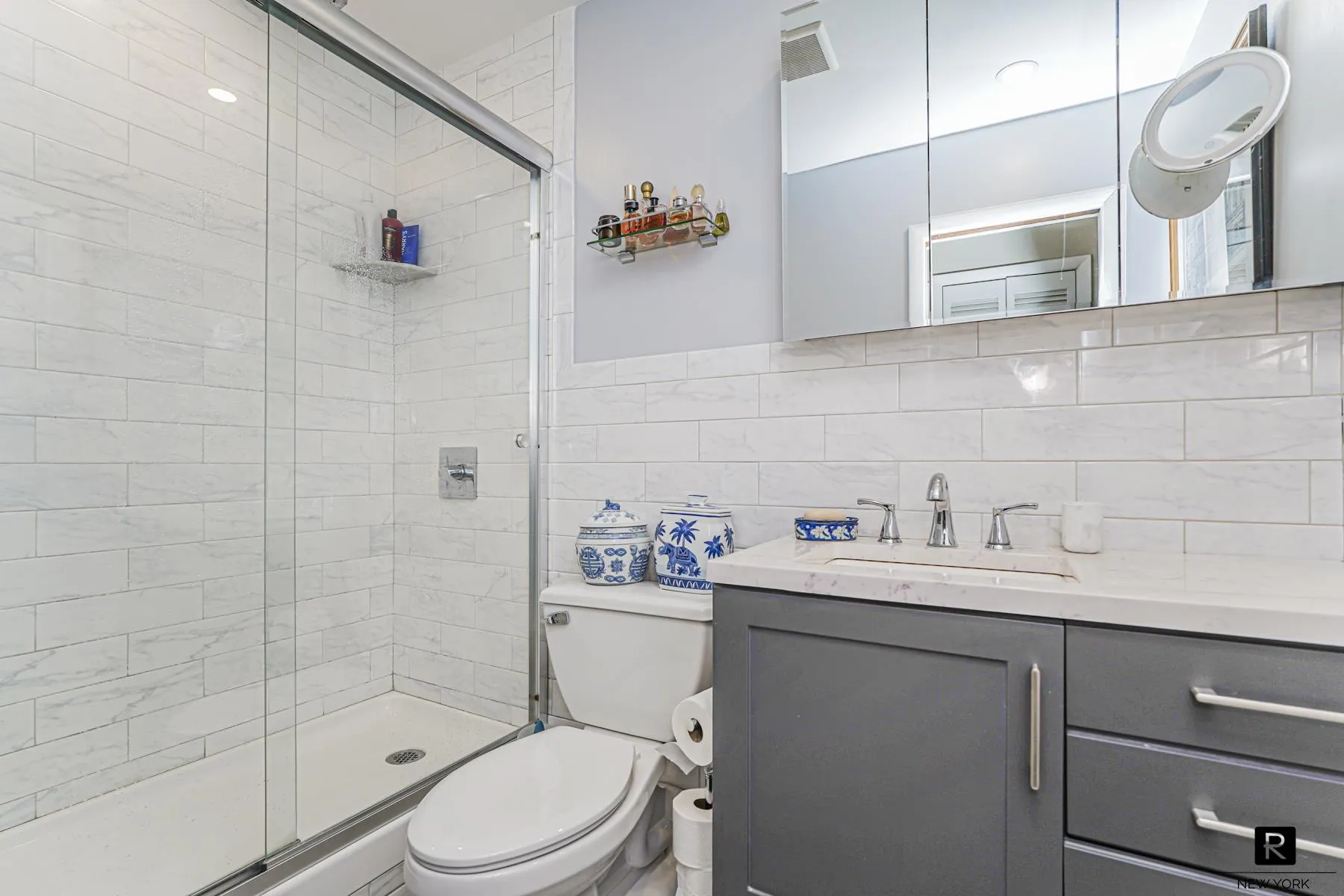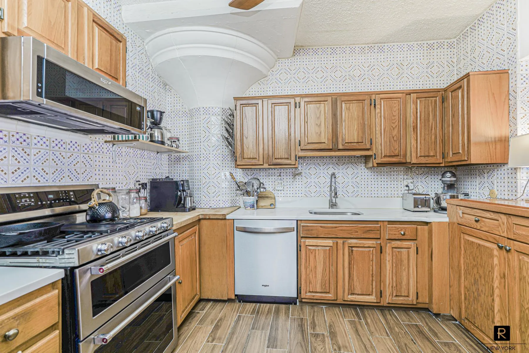Move-in ready! 5J is an open loft 1Br with beautiful water and glistening NYC skyline views. Walk in and solid 5” plank wood floors take your eyes straight to the windows. Built in a former warehouse-converted to residential use in 1982, this home is well founded, solid and peacefully quiet. The kitchen, just remodeled is designed as a modern country kitchen with decorative backsplashes and SS appliances. The gas & convection oven is the highly regarded KitchenAid double-oven! This kitchen has a serving-breakfast-bar-island counter offering the vista of Manhattan’s skyline. The bedroom is quite spacious with two closets with room for a sitting area or more closets. The bathroom is gut renovated with white metro tile accented by soft grey. A full sized walk-in shower supplants a traditional tub. Your living room has a wall of mirrors expanding the space and the views of Upper New York Harbor and Manhattan. Sit on your sofa and enjoy the view directly from your windows. Watch the sunrises and sunsets over the skyline, bridges and colorful skies. There is more than enough room for living, entertaining or a home office. Plenty of closets and storage are tucked away. This apartment is a must see! Maintenance includes 1 designated parking spot, real estate taxes, water and gas for cooking. It also includes the community amenities. 5J is located within the Bay Street Landing community which is a 13 acre gated private waterfront community just 5 minutes from the ferries to Manhattan and Brooklyn. Amenities within the community are Tennis/Pickelball Courts, 2 dog runs, a playground, EV charging stations, 24 patrolling security, package collection, 2 BBQ areas, snow removal and Great Lawns. This gated waterfront community has no thru-traffic so is wonderful to walk around in. There are lots of private places to relax outdoors. Bay Street Landing = quality of life. Call for a tour!