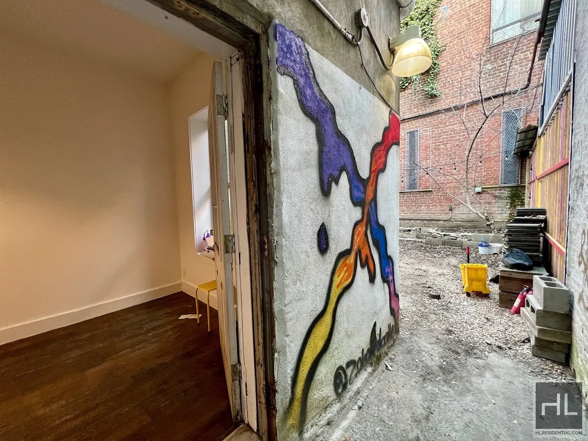 Leading to what makes this apartment so special: a massive private backyard with a full on performance stage