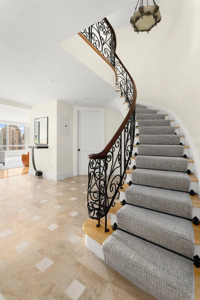The second floor also has its own spacious den/living area with deep mahogany custom cabinetry and an additional marble and wood wet bar adjacent to the primary suite. 2 additional spacious ancillary bedrooms upstairs with their own renovated baths, washer/dryer and additional renovated powder room complete the residence level of this palatial duplex. The residents of this home will also have access to a separate and coveted private storage space within the building.