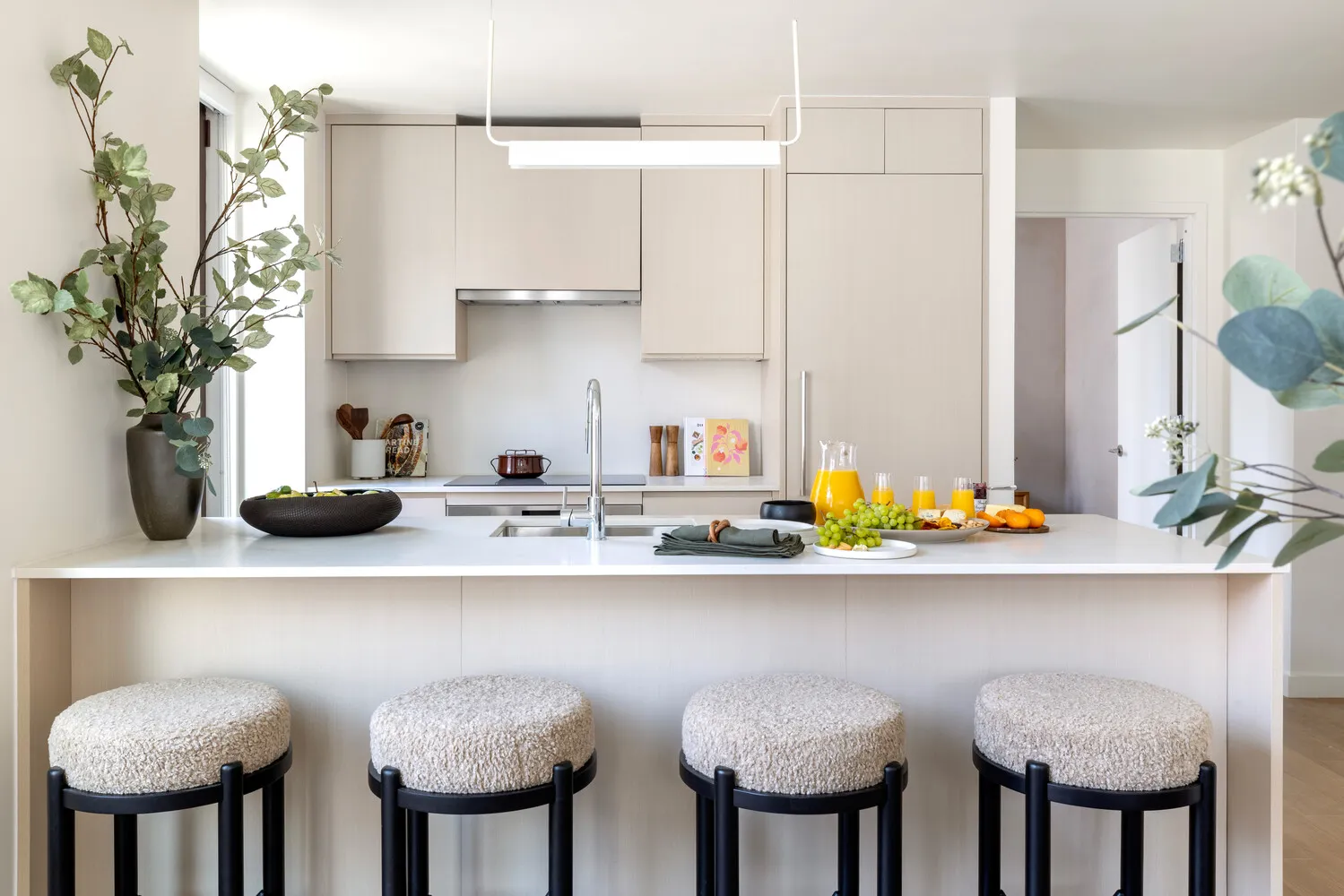 Inside, bright and airy studio to 3-bedroom residences feature oversized windows with iconic Manhattan views, elevated ceiling heights, White Oak-style flooring, in-unit Bosch washer & dryers, and smart home conveniences like programmable climate control and keyless entry.