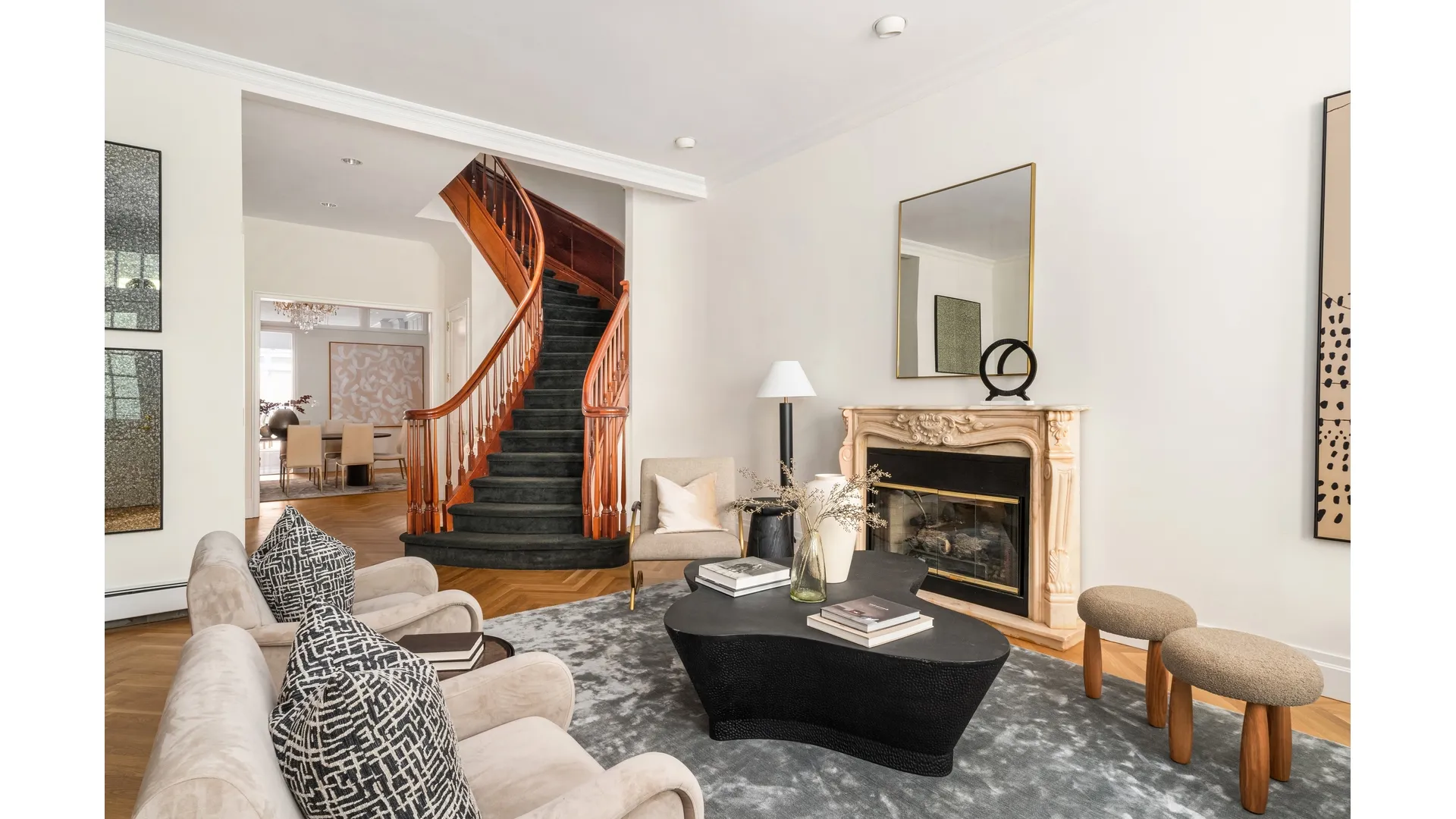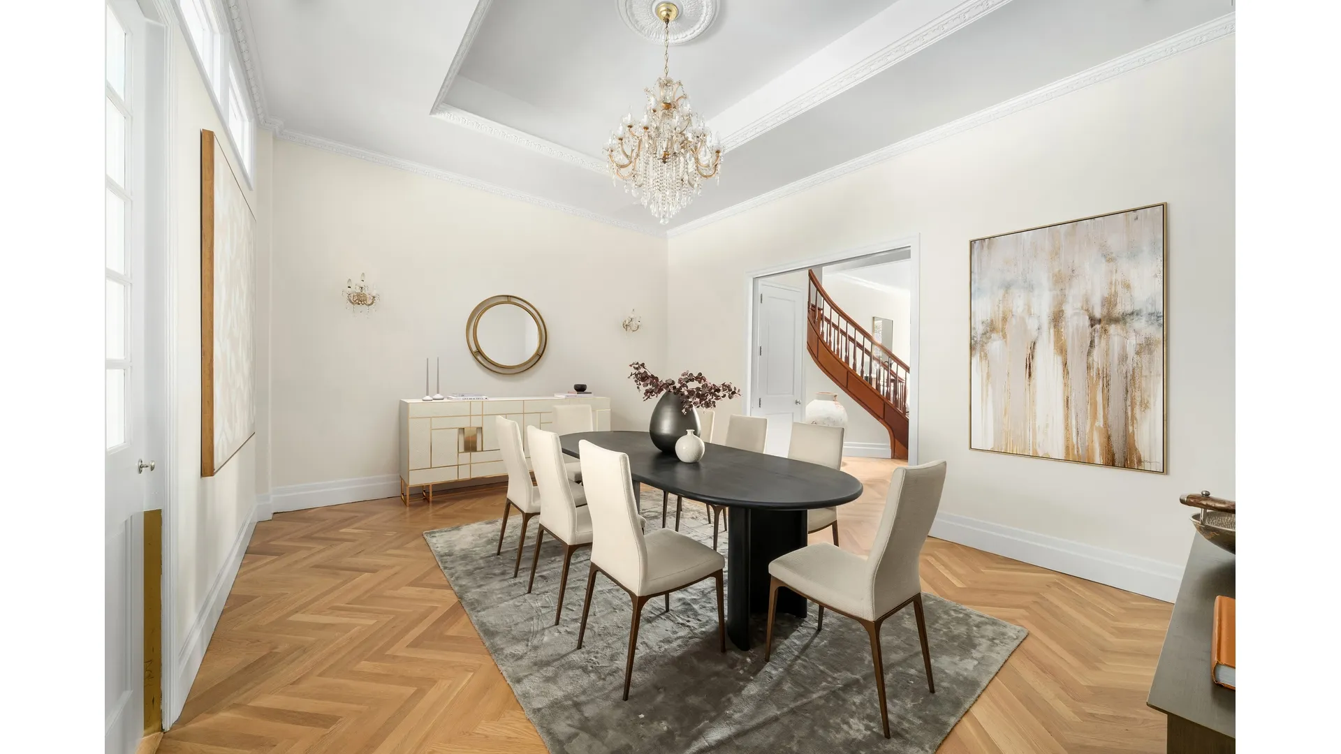 The interiors are designed to balance grandeur and livability. The parlor floor evokes a loft-like openness, featuring expansive living and dining areas anchored by a showpiece chef’s kitchen with direct access to a large private terrace-ideal for entertaining on an intimate or grand scale. The seven-bedroom layout is crowned by a top-floor primary suite, boasting a marble-clad bathroom, abundant storage, and an adjoining double-height library/study that opens to a private terrace with roof access.
