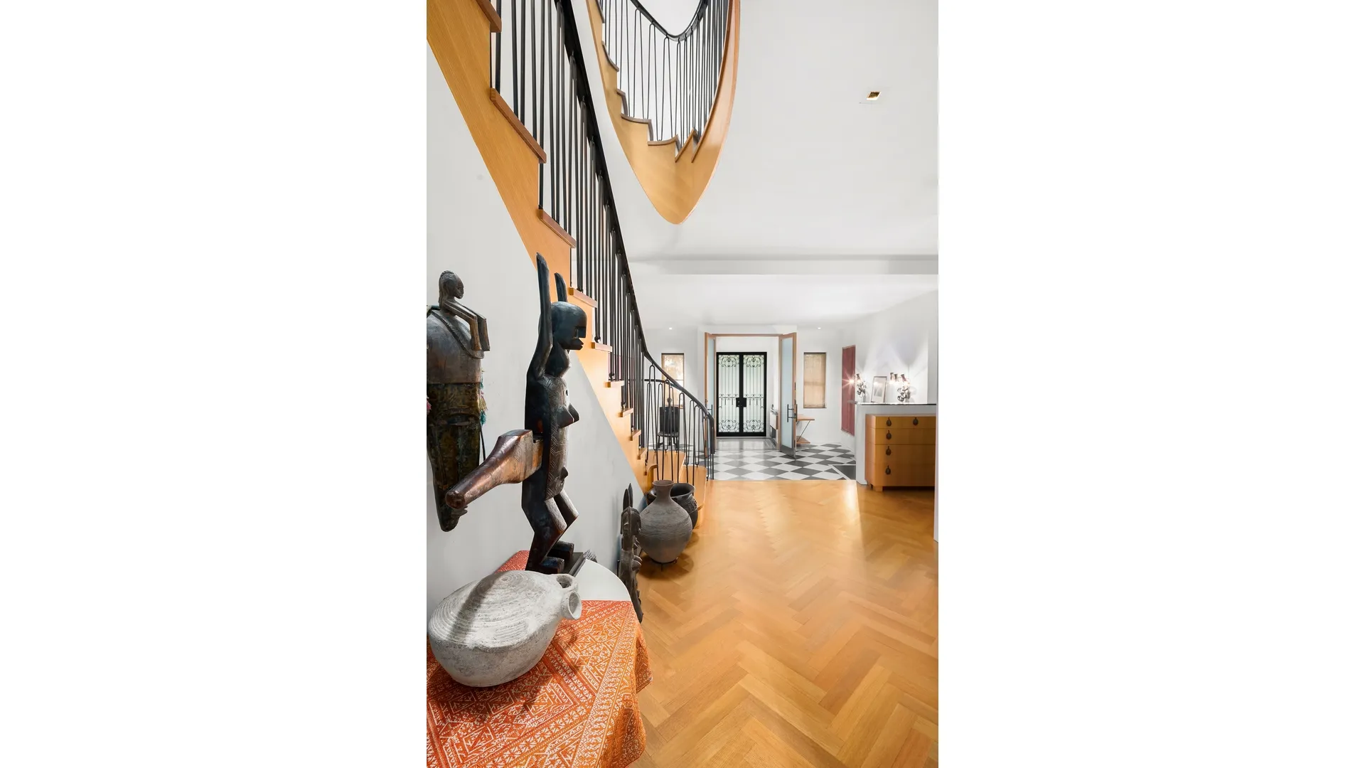 The 4th floor master bedroom, bathroom and dressing room remain a private area, bathed in sunlight during the day and quiet at night. The bright and airy fifth floor has a bedroom with ensuite bath, a gym and an office (both of which can easily be repurposed as bedrooms) with a shared bath off the landing.