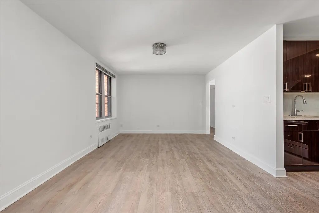 Welcome to this bright and well-maintained 1-bedroom apartment on the 5th floor of a fully renovated elevator building in the heart of Woodside, Queens. This inviting home features a modern open kitchen layout with stainless steel appliances that flow seamlessly into the living and dining areas, creating a spacious, functional living space ideal for both relaxing and entertaining.