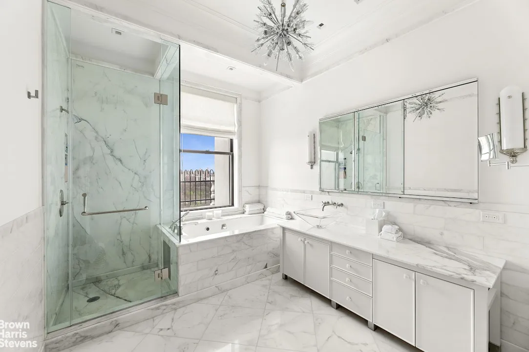Located on Fifth Avenue’s Museum Mile, this penthouse duplex boasts panoramic views of Central Park, the reservoir, and dramatic skyline views to Midtown Manhattan and beyond! There are water views from every room in this fantastic property. This meticulously renovated home features a grand, corner living room with southwest exposure, wood burning fireplace and stunning views over looking Central Park. On the first level, the formal dining room and library/guest room have direct park views. There is a top of the line windowed chef’s kitchen, den/media room with built in banquette, separate pantry and laundry, office/staff’s room and more! Upstairs, there are 4 additional bedrooms. The master suite features a private en-suite marble bath with window, soaking tub and stall shower. It also has a large walk-in closet and access to the wrap terrace. The additional 3 bedrooms also have en-suite baths. The private, wrap terrace is perfect for entertaining with its captivating views of Central Park. Located in a top prewar coop. There is a $78.50 cable charged per month, as well as sub-metered electricity charge. There will be a monthly assessment charge of $3909.55 to begin April 1, 2026 and ending March 31, 2027. This will enable a new lobby renovation, new gym and basement renovation.