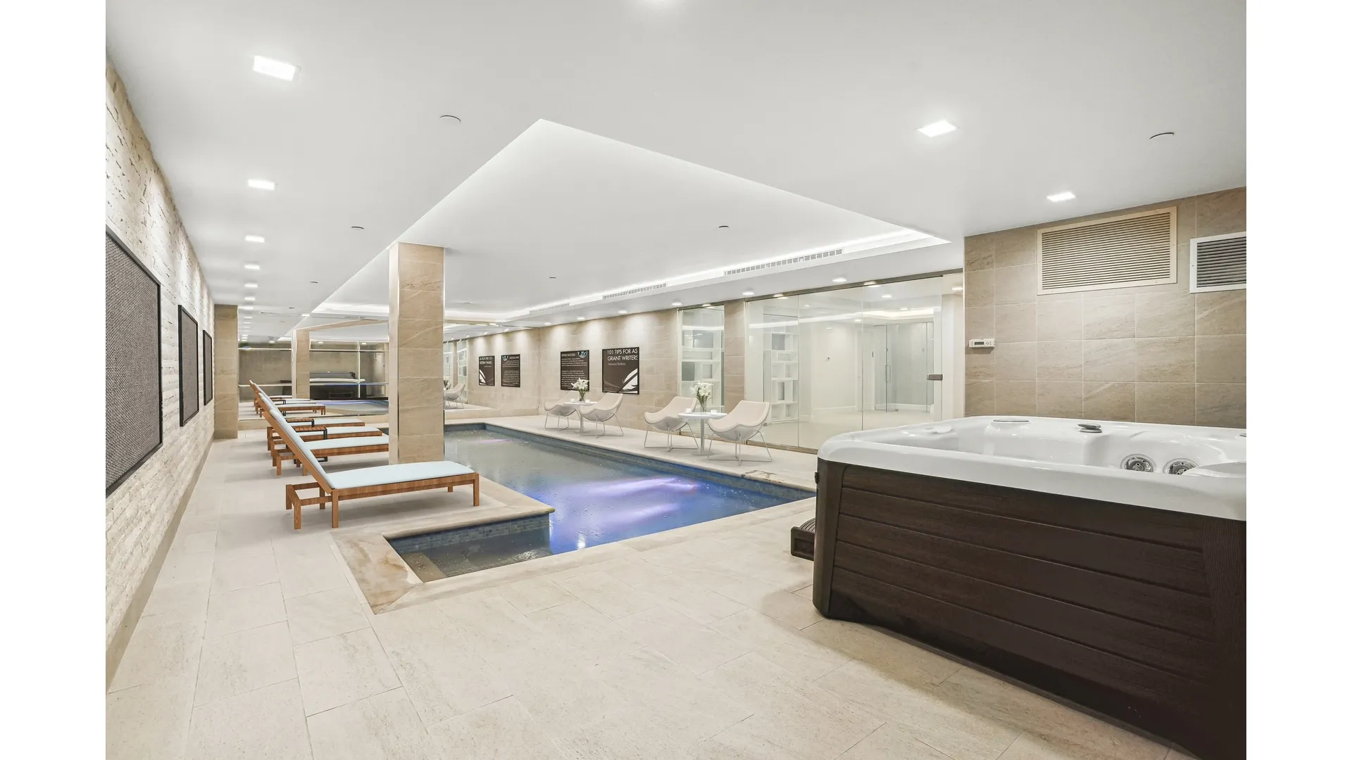 Imagine having your own private 32ft indoor lap pool, a haven of tranquility that doubles as your personal mikvah, providing both relaxation and spiritual sanctity. Adjacent to the pool, an indoor hot tub awaits, offering a rejuvenating escape from the bustling city.