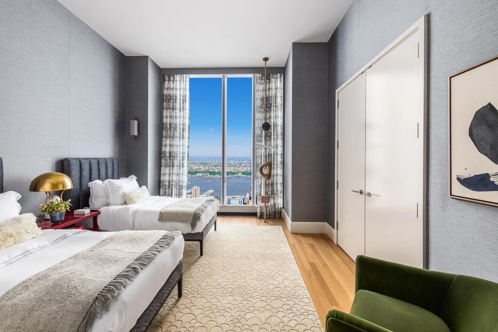 This north, west, and south-facing, three-bedroom, three and one-half bathroom residence boasts Central Park views from the Living/Dining Room. The formal entry foyer and gallery are fitting for this classic layout featuring ceiling heights of approximately 11-7. Floor-to-ceiling glass spans the perimeter of the entire residence, filling this home with light. The layout is perfect for entertaining and provides privacy and comfort with en-suite bathrooms as well as a separate powder room for guests. Crafted by renowned Smallbone of Devizes, the gourmet kitchen includes premium Miele appliances. The intelligently designed floor plan includes three large en-suite bedrooms and a separate powder room. The corner master bedroom suite boasts breathtaking south and west views and features an oversized walk-in closet and a luxurious windowed bathroom. Wake up each morning to the iconic landmarks of the famed New York City skyline and unwind in the evenings to beautiful sunsets over the Hudson River.