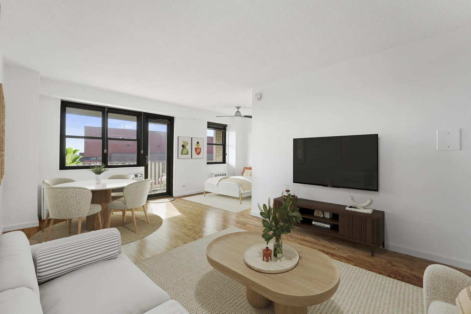Oversized East-Facing Alcove Studio with Balcony Sunrise Views Full-Service Building 10 Minutes to Grand Central