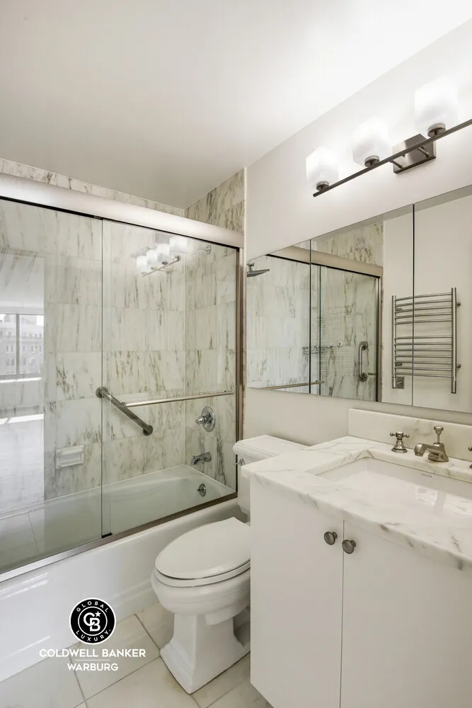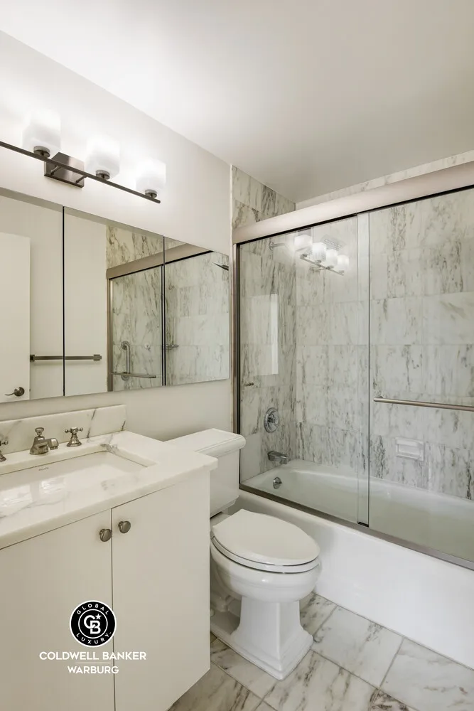Welcome to Apt. 17G, a high-floor Carnegie Hill unit in a full-service condominium near Central Park. Experience spectacular sunrises as light streams in through its open southern and eastern exposures, with no other high rises nearby. A wide-angled living room, with its oversized picture windows, allows you to gaze out over much of the Upper East Side and Midtown while providing expansive interior living space including multiple options for a comfortable dining area. The substantial primary bedroom has a full-size walk-in closet and attractive marble en-suite bath. The kitchen features a Fisher & Paykel refrigerator and Bosch stove, microwave, and dishwasher; and granite countertops, including a breakfast peninsula. There is a spacious second bedroom that can fit a full furniture set and a second marble bathroom for you and your guests. The apartment has just been fully repainted and refreshed, boasting brand new lighting fixtures.