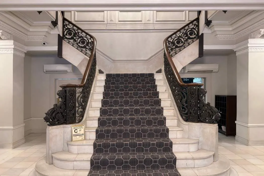 There is an elegance to the building and the grand scale of the apartments rarely seen in later buildings. The marble lobby is significant in having a spectacular curved double staircase with wrought iron balustrades whilst historic hand operated elevators for both the east and west side apartments create a visual impact for owners and guests alike, further enhanced by arrival on the 8th floor where an unusually large, private reception foyer presents itself.