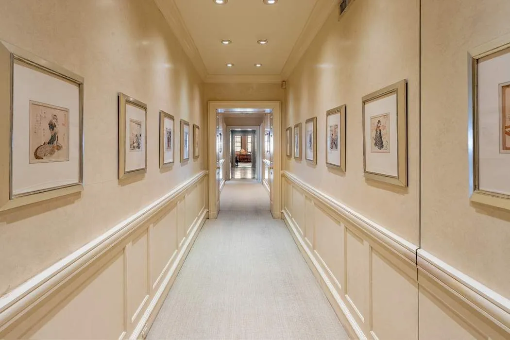 The south wing of the apartment comprises a wide bedroom hallway which creates a perfect picture gallery and leads to the comfortably spacious south-west corner master suite with separate dressing room, large windowed bathroom, and a plethora of fitted closets. An adjacent second bedroom with bathroom could easily function as a private study or sitting room, creating a private suite of over 1,200 square feet.