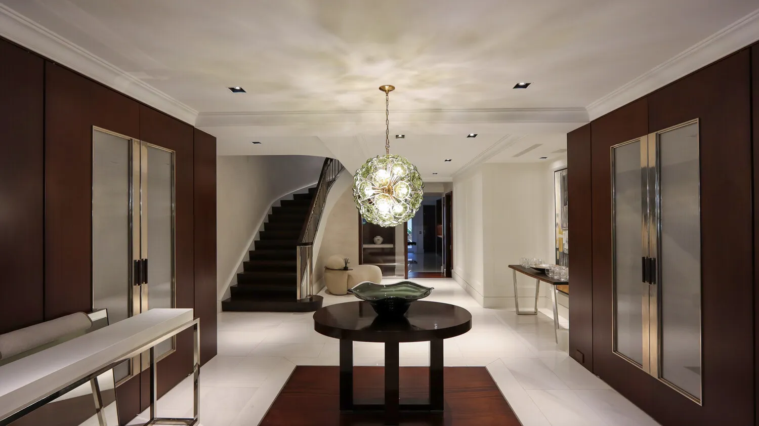 This exceptional over 20-foot-wide townhouse is discreetly positioned on one of Manhattan’s most prestigious blocks, between Madison and Park Avenues on the Upper East Side. Spanning approximately 8,200 square feet across six meticulously designed floors, the residence offers six bedrooms, seven full bathrooms, and two powder rooms.