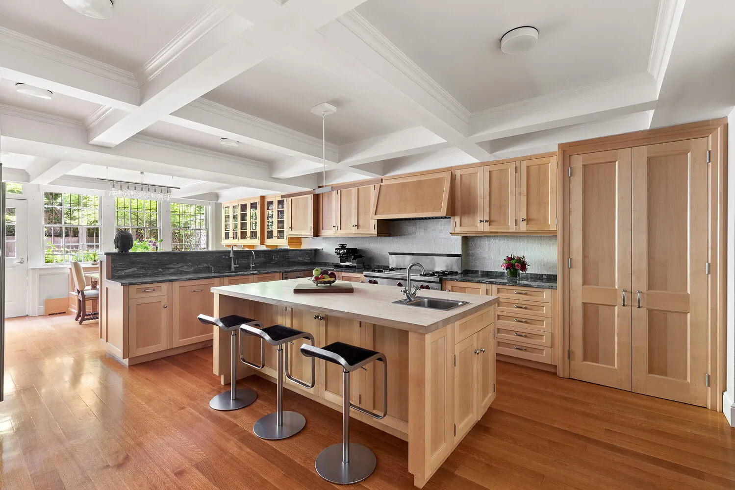 The PARLOR LEVEL is an inviting space perfect for formal entertaining, dinner parties, holiday feasts, and more. It begins with an expansive living room with a fireplace, several seating areas, and a wall of windows overlooking the garden. The dining room can easily accommodate a table for twelve and has a fireplace and a large butler’s pantry with a sink, beverage coolers, a direct staircase to the kitchen, and an eastern exposure to let in vibrant morning sunshine.