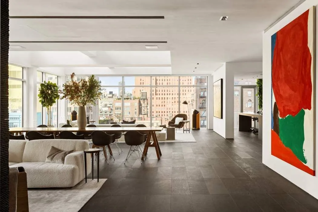 Perched above Tribeca’s rooftops, this glass-walled penthouse is both architecture and art, a luminous modern sanctuary in the sky. Designed in collaboration with BKSK Architects, it spans over 6,700+/- square feet with 3148+/- square feet of landscaped terraces and is plumbed for an endless pool swim spa. Framed by panoramic views from the Hudson River to the Brooklyn Bridge, it merges downtown authenticity with serene, contemporary design.