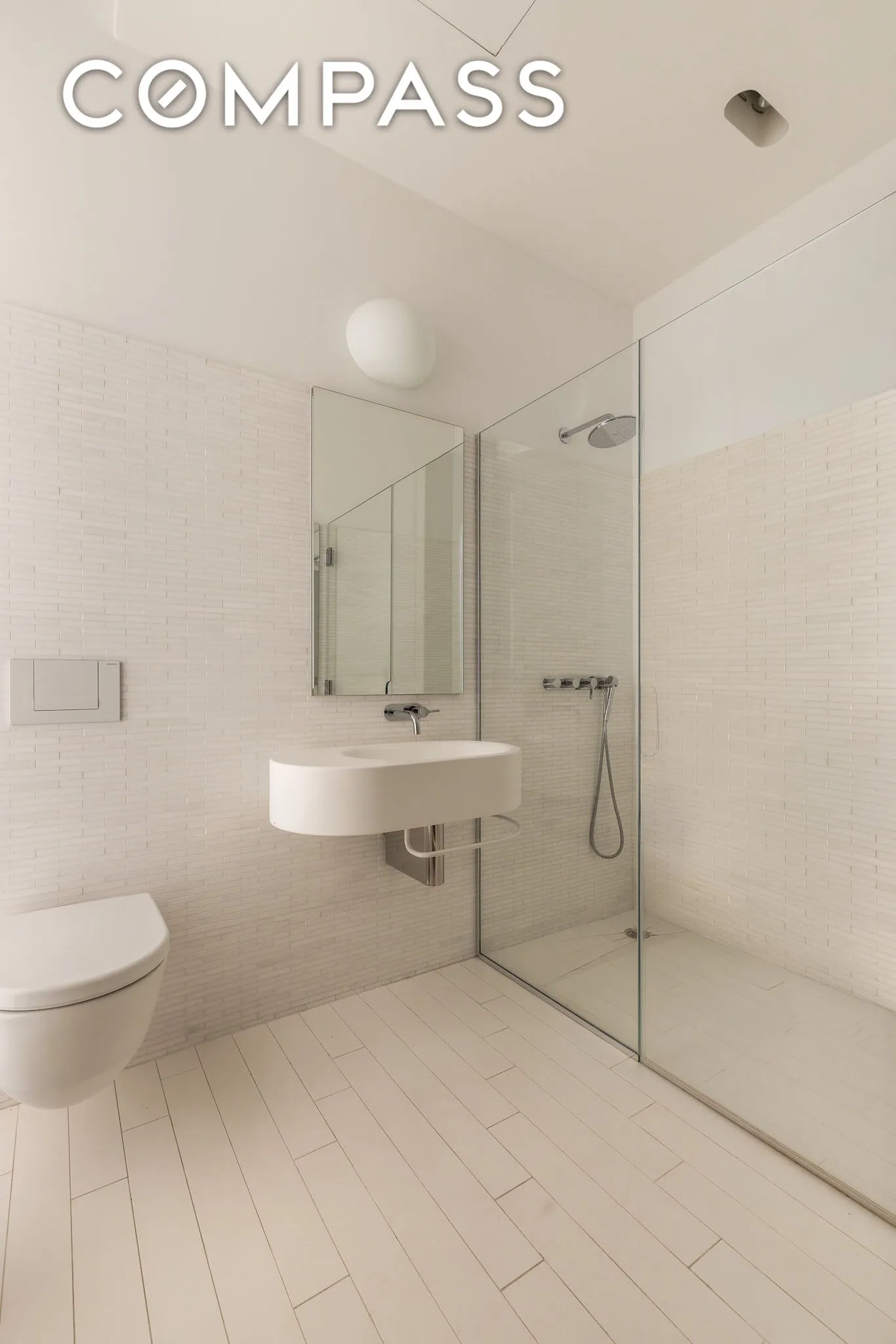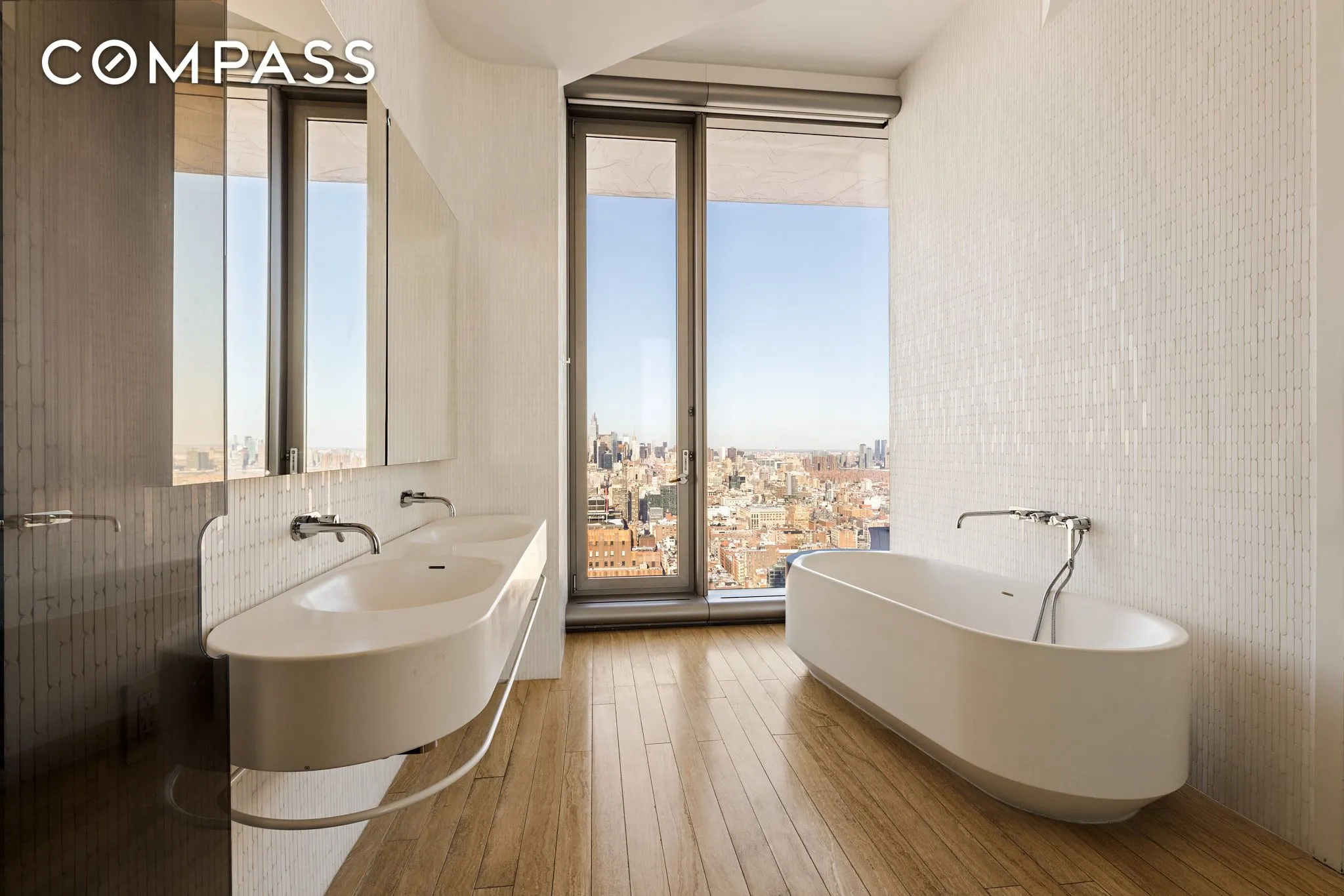 Completing the unit: white oak floors throughout; 4-pipe heating and cooling with multi-zone climate control; a full laundry room with vented washer/dryer; motorized shades throughout; and a powder room off the foyer.