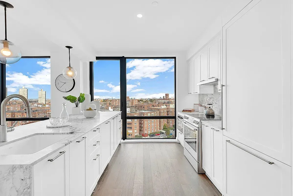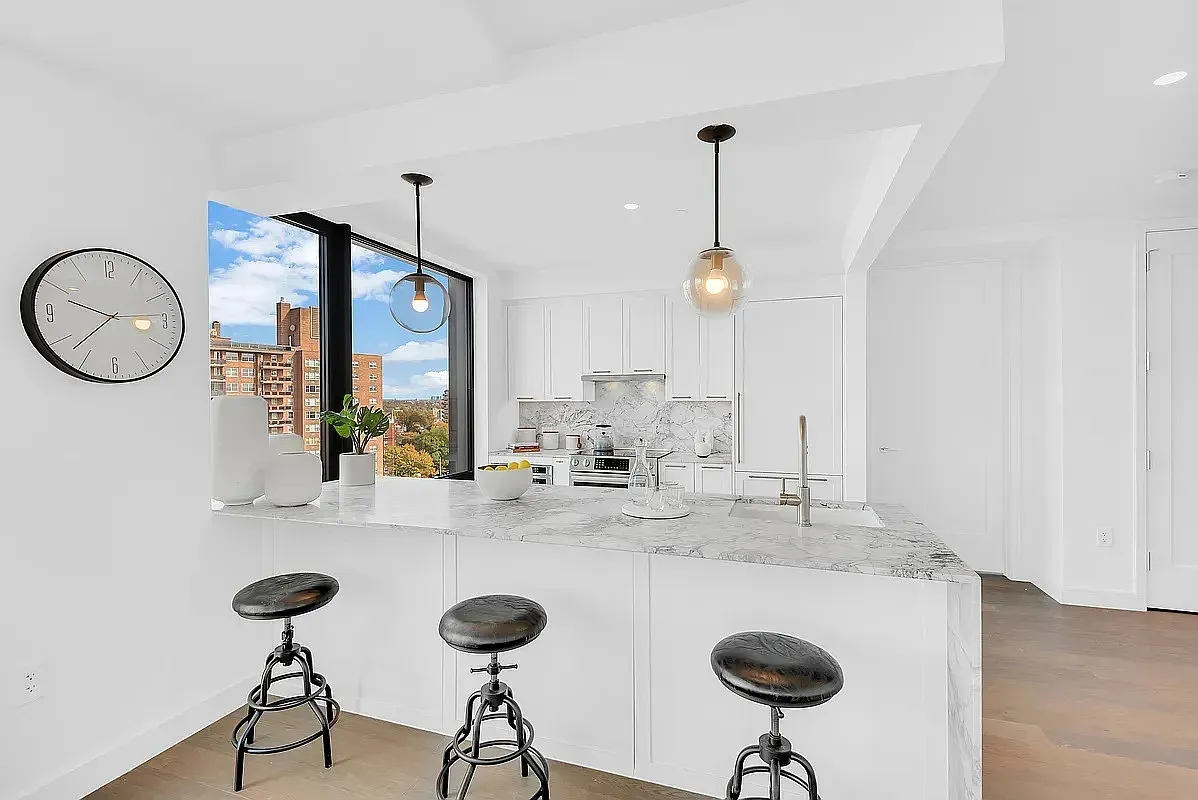 Residence 8A at BLVD offers a bright and sophisticated two-bedroom, two-bathroom layout with a private balcony, bringing comfortable luxury to the heart of Forest Hills. Oversized windows fill the home with natural light, highlighting oak hardwood floors and a sophisticated contemporary design. The chef-inspired kitchen serves as the centerpiece of the home, anchored by a striking marbled waterfall island and illuminated by elegant Hinkley circular fixtures. Custom cabinetry with embellished hardware pairs seamlessly with the designer backsplash. Premium Bosch appliances including a slide-in range, drawer microwave, fully integrated paneled dishwasher, and a brand-new stovetop and oven deliver both style and performance. A Bosch pull-out recirculating range hood completes this thoughtfully curated culinary space. Both bathrooms evoke a serene, spa-like ambiance with Carrara marble tiled walls, Camden Satin Nickel sconces, and Italian porcelain floors. A custom satin-nickel and glass shower enclosure, Kohler vanities, dovetail mirrors, Kohler toilets, and full-length recessed Robern medicine cabinets elevate everyday comfort. Beyond the shaker-panel solid core doors are two spacious bedrooms, including a primary suite with an exquisite all-marble bathroom. An in-unit Bosch washer and dryer add convenience to this beautifully appointed residence. BLVD enhances daily living with an impressive suite of amenities. A grand lobby with package room and virtual doorman welcomes residents home. Onsite parking provides ease and peace of mind. The resident lounge opens to an artfully landscaped courtyard, ideal for gatherings or quiet relaxation. A fully equipped business center with private conference room supports work-from-home needs, while the children’s playroom with custom cabinetry offers a delightful space for little ones. The Advantage Sports & Fitness gym features top-tier Precor equipment, and the furnished courtyard with BBQ stations invites outdoor enjoyment. Perfectly positioned between the tranquility of MacDonald Park and the vibrant energy of Austin Street, BLVD offers unmatched access to Forest Hills’ best. Enjoy over 50 walkable shops, cafe´s, and restaurants, along with cultural landmarks such as the West Side Tennis Club and its historic concerts. Transportation is effortless with the E, F, M, and R trains at Forest Hills-71 Ave, nearby bus routes, and the LIRR providing a swift 20-minute commute to Manhattan.