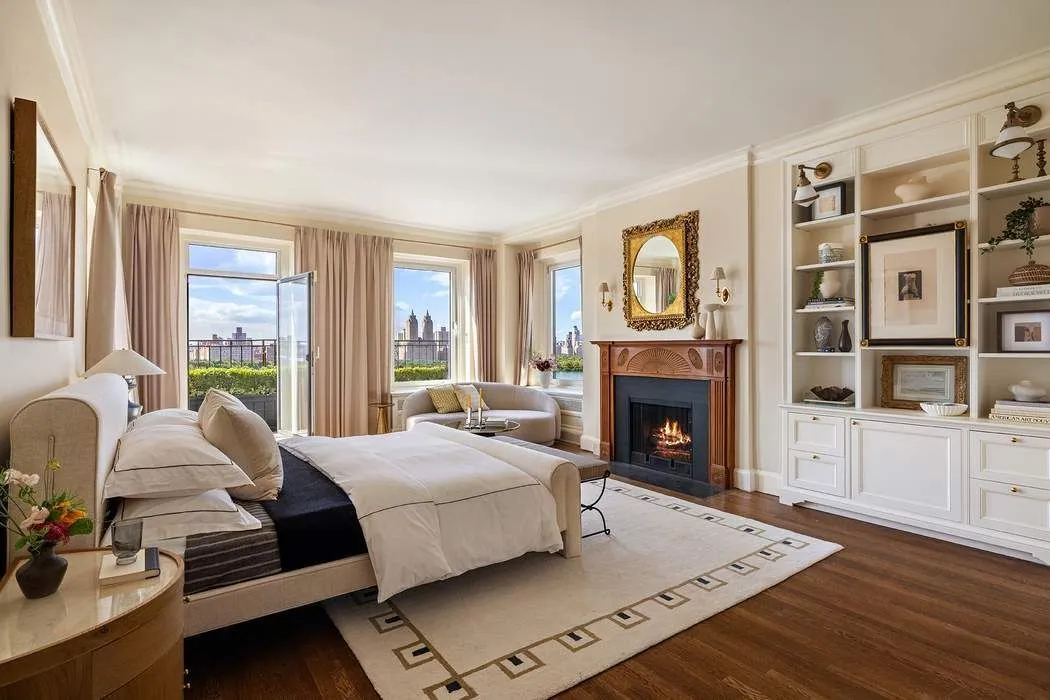 Serene private bedroom quarters include an extraordinarily stunning Primary Bedroom suite with a wood-burning fireplace and three magical exposures with breathtaking views of Central Park and the Reservoir. The suite includes a Dressing Room with a large picture window and a spacious ensuite Bathroom. There are three additional bedrooms, all generous in size, two of which have Central Park and sunset views while the third enjoys open city views and morning sunlight from the east.