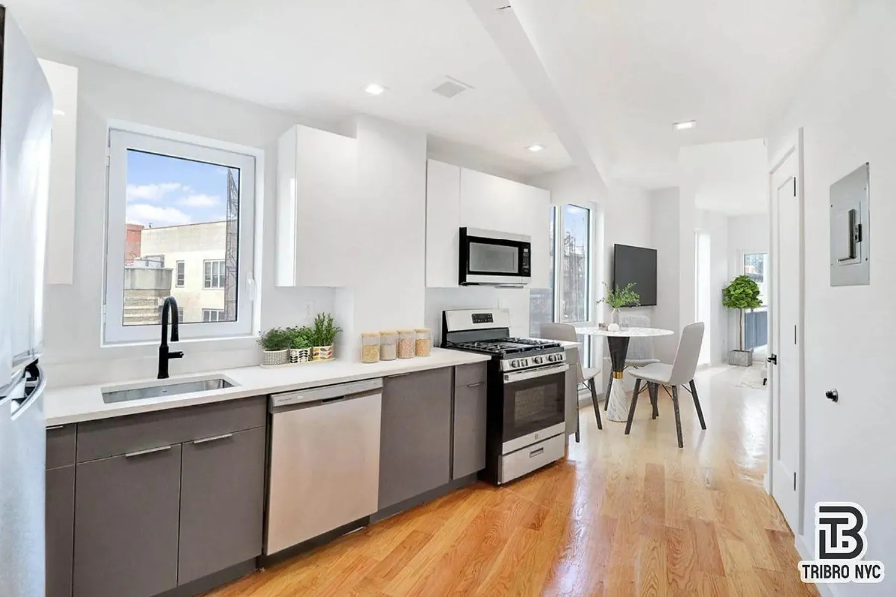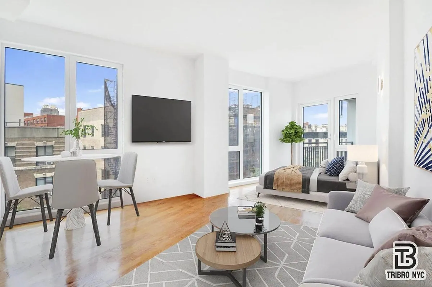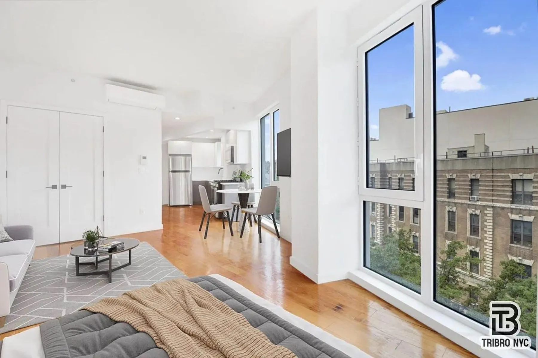 Welcome to this well-designed studio apartment offering a comfortable and efficient living space. The open layout provides flexibility to create distinct areas for sleeping, relaxing, and dining, while large windows bring in natural light and create a bright, airy atmosphere.