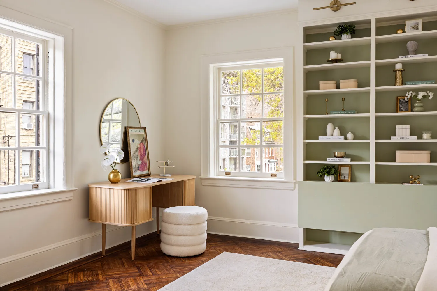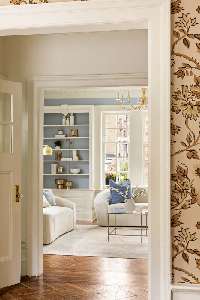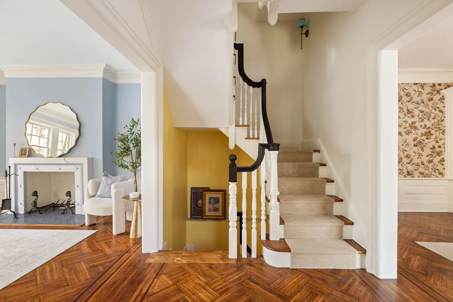 A true Colonial Revival gem, the home has been meticulously reimagined to honor its architectural heritage while introducing a refined, whimsical sophistication. The restoration thoughtfully preserves original millwork, moldings, and beautifully maintained wood casement windows-each carefully restored, repaired, and weatherproofed-while layering in bold, contemporary finishes that create a vibrant yet timeless aesthetic. The parlor level is grounded by elegant herringbone flooring, while the remainder of the home features original hardwood floors throughout, further reinforcing its historic integrity.
