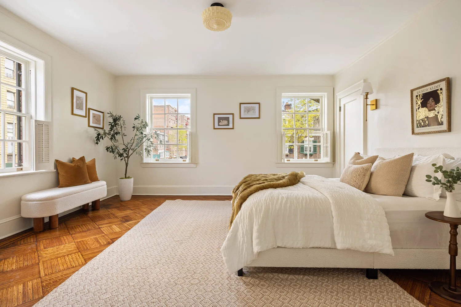 The second floor features two impressive almost 20-foot-wide bedrooms with generous closet space, along with a beautifully renovated full bath. A third bedroom opens to what Landmarks has referred to as a “sleeping porch”-a charming and flexible space ideal for a bedroom, home office, or playroom.