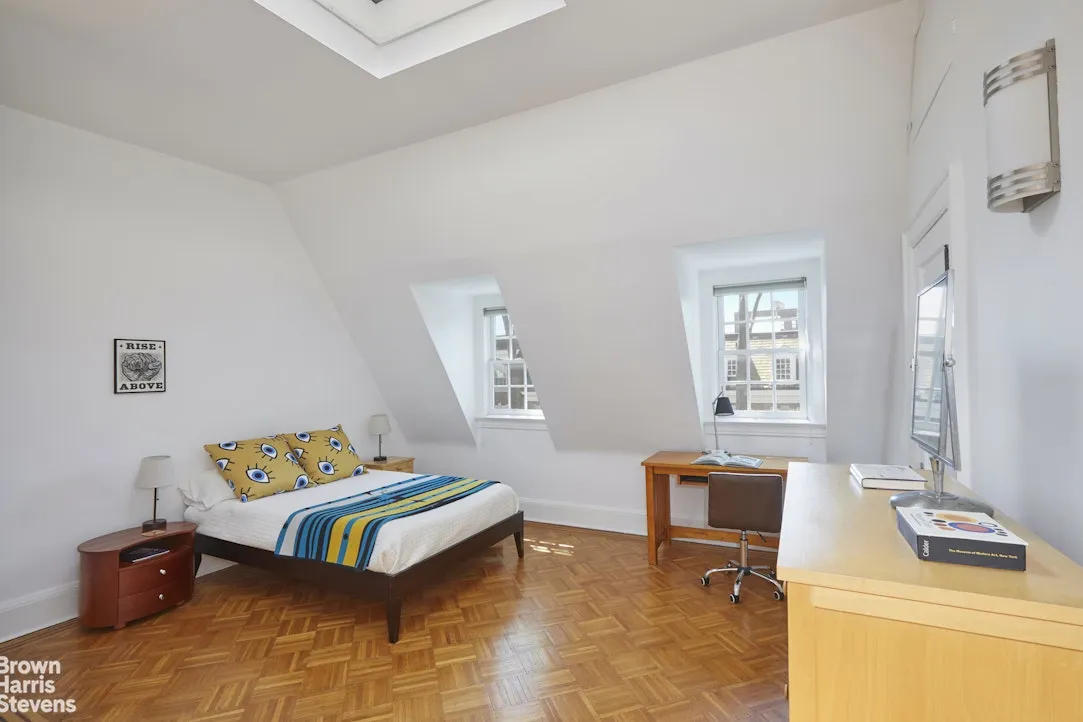 On the upper floors, there are five bedrooms and three full baths (one with a steam shower). Each room has a distinct character, excellent light, and a sense of privacy that is unusual in townhouse living. The primary bedroom suite is a particular retreat with wide spans of windows looking onto the quiet beauty of the rear gardens.