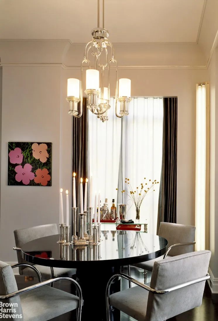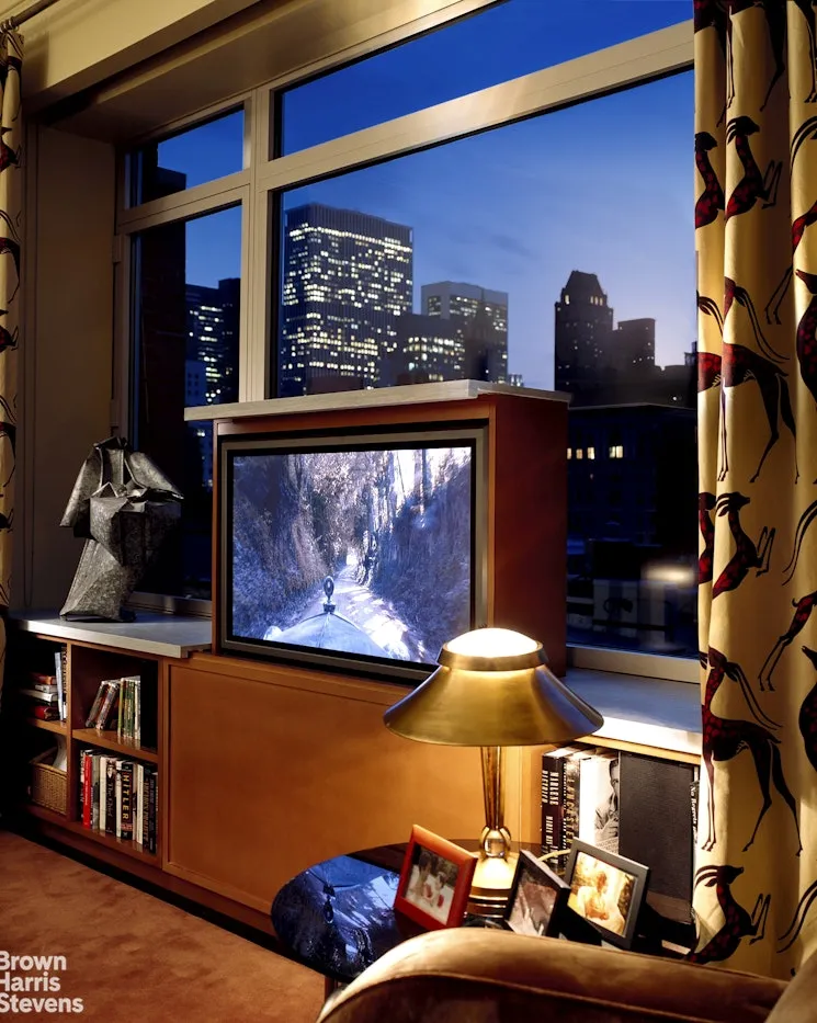 A rare and distinguished offering, this exceptional two-bedroom residence was the private home of the late, renowned architect Robert A. M. Stern. Defined by grand scale, refined detail, and serene outlooks, the apartment is graced with soaring 11-foot ceilings and dramatic floor-to-ceiling French windows overlooking one of Manhattan’s most beautiful private landscaped gardens.