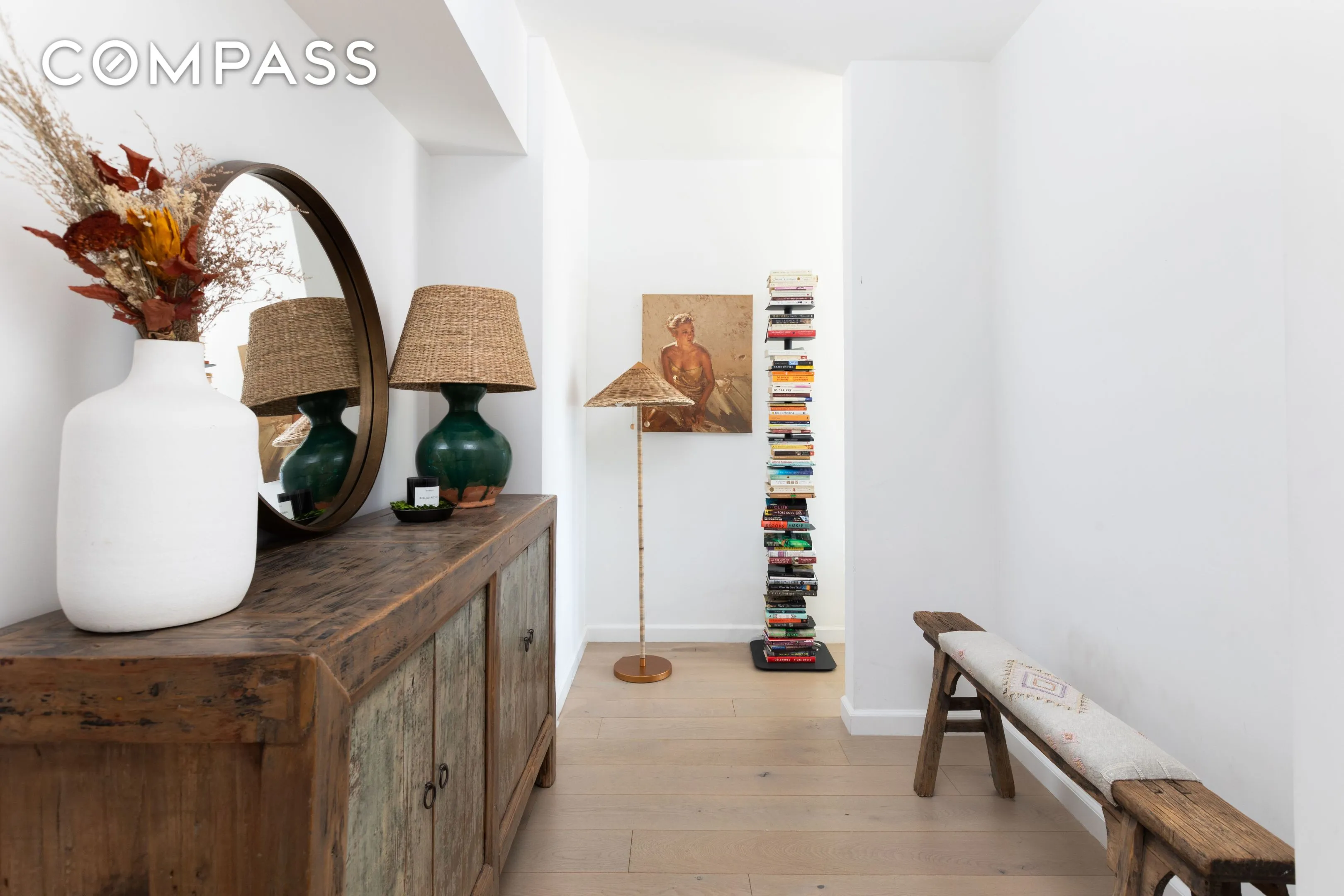 This home is perfectly situated in the building, Overlooking the landmarked Treadwell Farm Historic Gardens, this 1,145sf One bedroom, One and a Half Bathroom home features Modern and Elegant interiors by Messana O’Rorke. while serene and open views to the East offer exceptional light in every room throughout the day. Residence 10C features an oversized Living Room, separate Dining Area, and additional Home Office space (easily convertible to a second sleeping area). The gracious layout is further enhanced with approximately 9 foot ceilings and 7 inch White Oak plank flooring. The Windowed kitchen is outfitted with Marble Countertops and Custom white matte lacquer cabinetry. Top of the line appliances include a Miele Refrigerator and Dishwasher, Miele convection oven and cooktop with hood, Microwave, and a Marvel Wine Refrigerator. The Primary Bedroom suite offers Oversized Windows overlooking the Gardens, two Custom built-out closets, one of which is a walk-in-closet, and an En-suite Bathroom with radiant heated floors, Marble countertops, custom glass enclosed shower and Waterworks fixtures. The powder room off of the entry is also very well designed with a Marble Vanity and custom fixtures. In addition to the great closet space throughout the apartment, there is also a Miele Washer and Dryer in the residence.