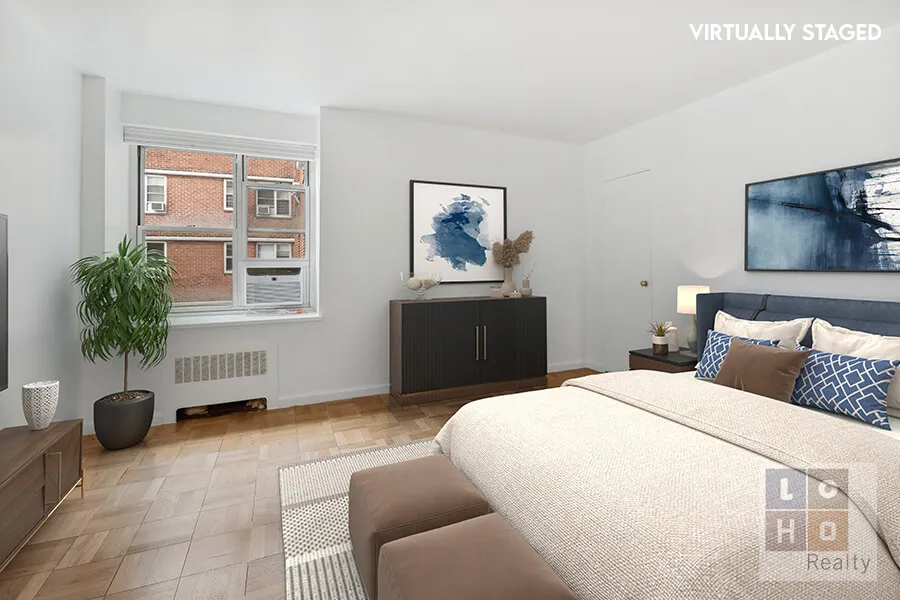 Light is abundant in this large one-bedroom apartment, featuring a private balcony and views of the Williamsburg Bridge, East River and Manhattan’s uptown skyline! Light floods into the spacious living room through a triple-width picture window on the northern exposure, and an additional window and glass balcony door on the western exposure. For those with renovations in their future, the eat-in windowed kitchen walls can be opened towards the living room and foyer areas to create a large open entertainment area with light flowing further into the apartment. A large bedroom with an oversized walk-in closet, renovated bathroom with shower stall, 3 additional large closets, and beautifully refinished hardwood parquet floors throughout!