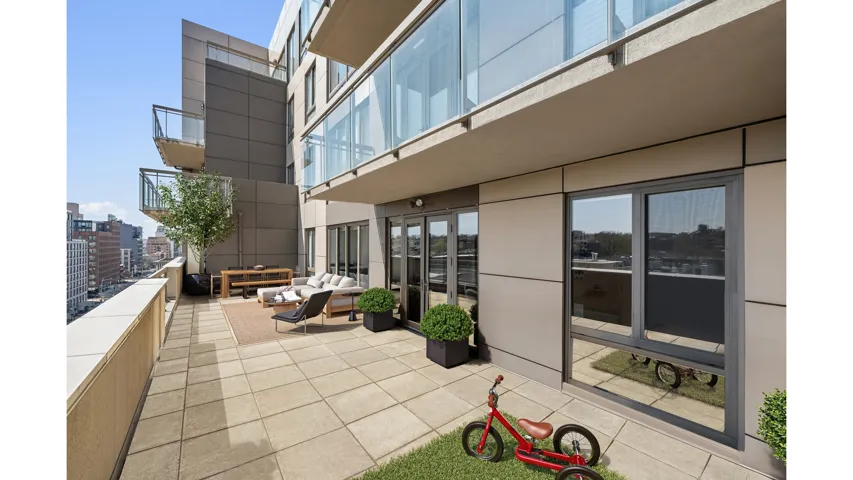 +"PublicRemarks": "<p>Residence 6D at 219 Hudson - First Resale Turnkey Corner Home with Terrace</p> <p>Beautifully updated and truly turnkey, this sun-splashed two-bedroom, two-bathroom corner condominium offers designer interiors, exceptional custom california closets, and a rare private terrace in a modern boutique building at the coveted crossroads of Hudson Square, Tribeca, West SoHo, and Greenwich Village. This is the first resale in the building-a rare and compelling opportunity.</p> <p>Spanning 1,152 square feet, this like-new residence is defined by soaring 10+ foot ceilings, bold architectural columns, and wide-plank white oak hardwood floors. Oversized, one-inch-thick CitiQuiet sound-resistant windows frame open-sky and skyline views to the south and east, filling the home with natural light throughout the day. Custom window treatments-including motorized Hunter Douglas and SPF sunshades-offer effortless light control at the touch of a button.</p> <p>A gracious entry gallery leads into a striking great room, where a designer dining chandelier anchors the space and expansive views stretch across classic industrial architecture and the leafy treetops of Freeman Plaza. Floor-to-ceiling sliding glass doors open to an exceptional 229-square-foot terrace with unobstructed views, no balconies above, custom retractable screens, and a permitted gas-line barbecue-an entertainer's dream and a true extension of the living space.</p> <p>The open gourmet kitchen is both elegant and highly functional, featuring custom cabinetry, honed marble countertops, a waterfall breakfast bar, integrated Insinkerator, and a five-stage tankless reverse-osmosis water filtration system. A full suite of top-of-the-line Miele appliances and a Marvel wine refrigerator elevate every culinary experience.</p> <p>The desirable split-bedroom layout ensures privacy and comfort. The serene, south-facing primary suite boasts a custom California Closets walk-in and a spa-caliber en-suite bathroom with a frameless glass shower, soaking tub, double trough vanity, heated floors, floor-to-ceiling stone tile, and a Duravit SensoWash commode. The second bedroom enjoys direct terrace access, a custom California Closets Murphy bed, a generous closet, and convenient access to the beautifully appointed guest bath.</p> <p>Additional highlights include California Closets throughout, central HVAC with individual controls, an in-unit Miele washer/dryer, and a deeded storage unit, completing this move-in-ready showpiece.</p> <p>Designed by Rawlings Architects P.C. and completed in 2022, 219 Hudson is a pet-friendly boutique condominium offering a virtual doorman, package room, bike storage, resident storage, and a fully equipped fitness center.</p> <p>Perfectly positioned at the epicenter of Downtown Manhattan, the building is moments from Tribeca, SoHo, Greenwich Village, and the Hudson River Greenway, with 500 acres of waterfront recreation just four blocks away. World-class dining, shopping, culture, and major tech and media headquarters. Transportation is effortless with access to the 1, A/C/E, N/Q/R/W, J/Z, and 6 trains, multiple bus lines, CitiBike stations.</p> <p>Making this terrace-level corner home an increasingly rare opportunity.</p>"